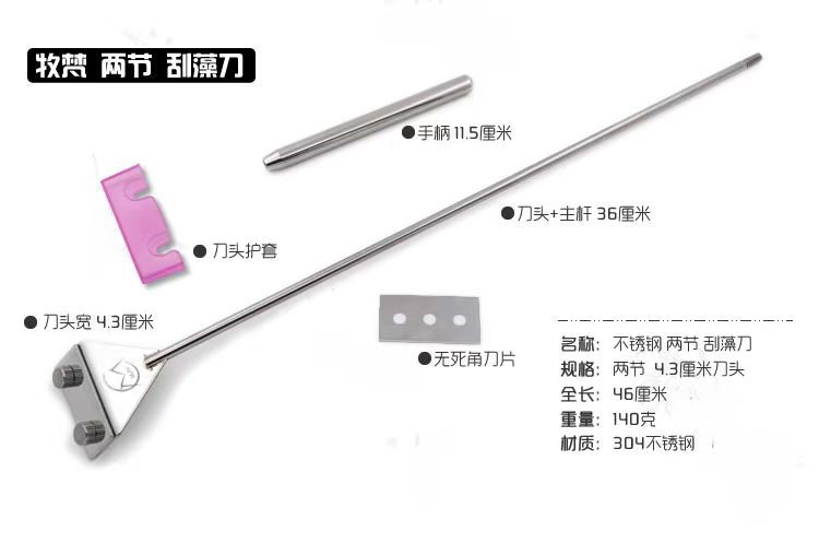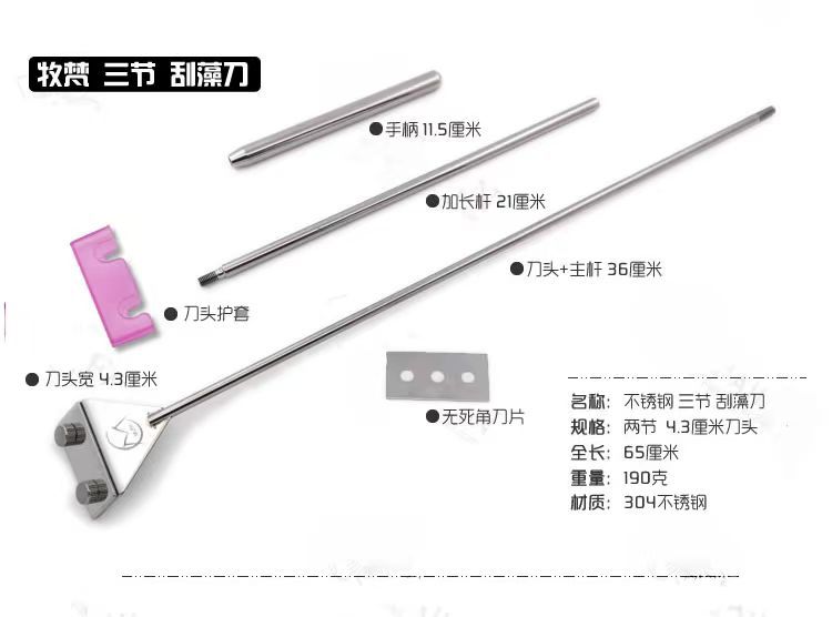 Mu 팬 304 스테인레스 스틸 조류 스크레이퍼 알루미늄 합금 조류 제거 칼 조류 스크레이퍼 2 섹션 3 섹션 데드 앵글 블레이드 없음스토어 가기