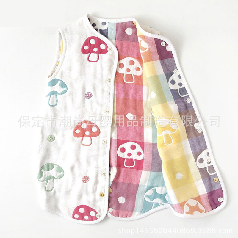 40S 버섯모양 6겹 거즈 아기 침낭 도매, 발차기 방지 이불 겸용, 자수, 면 거즈 통기성
