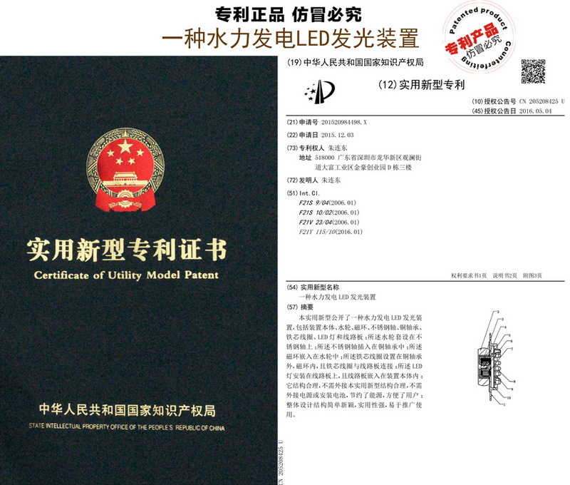 不需要电力、电池,无需外来电力,打开水源,就可亮灯!