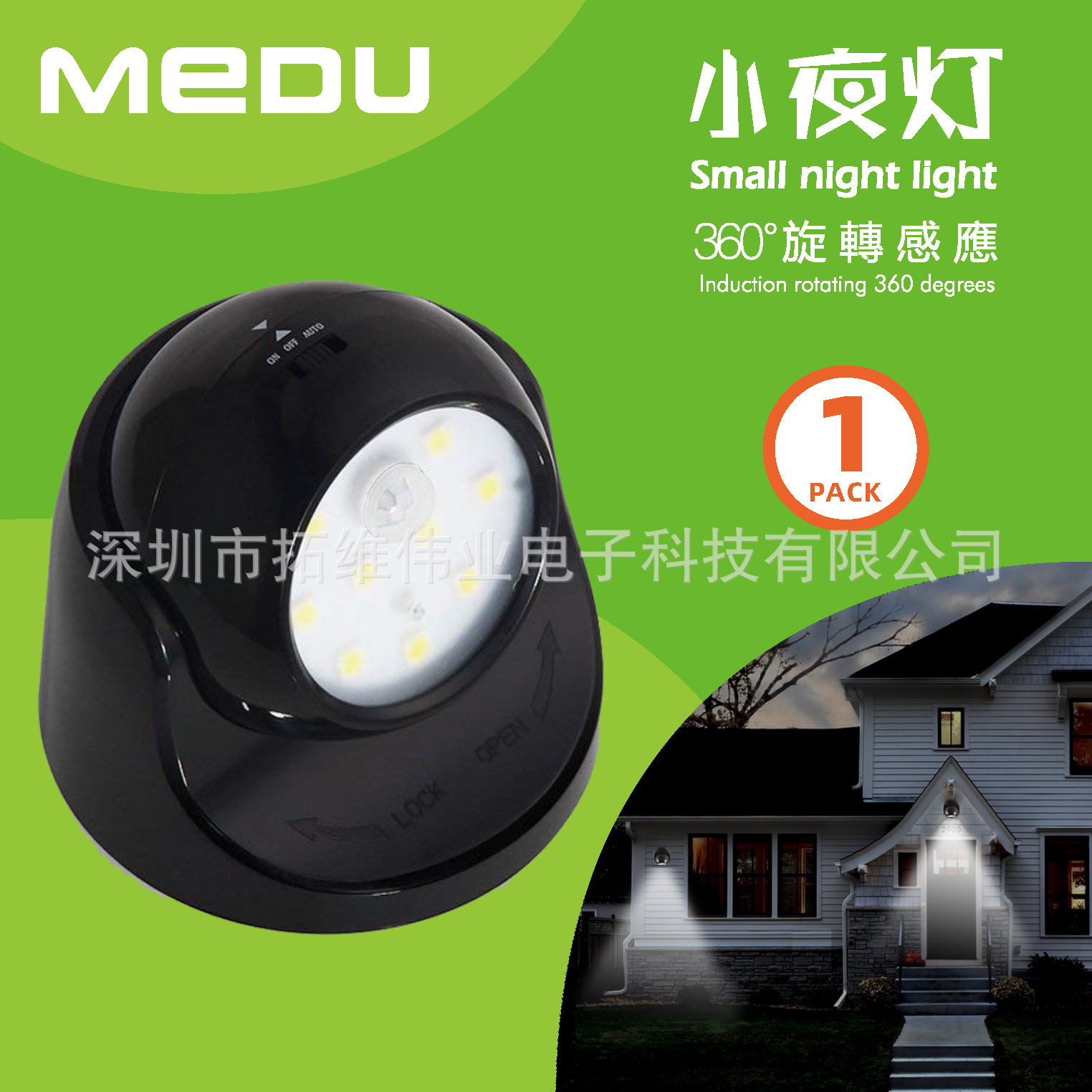 跨境电商热销厂家一件代发9LED360度旋转创意家居感应灯智能LED室内室外感应灯