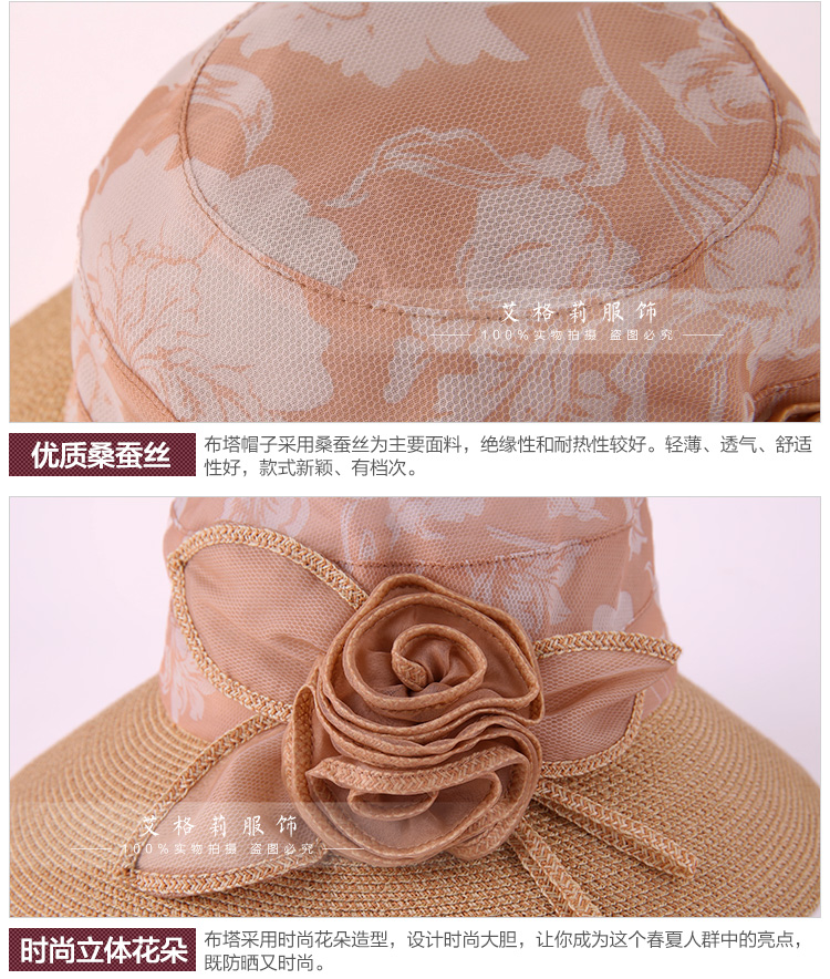 부타 모자 여성용 여름 자외선 차단제 모자 실크 한국식 차양 모자 유행 접이식 비치 모자 PT0508스토어 가기