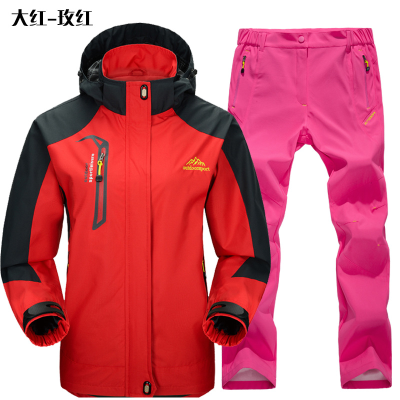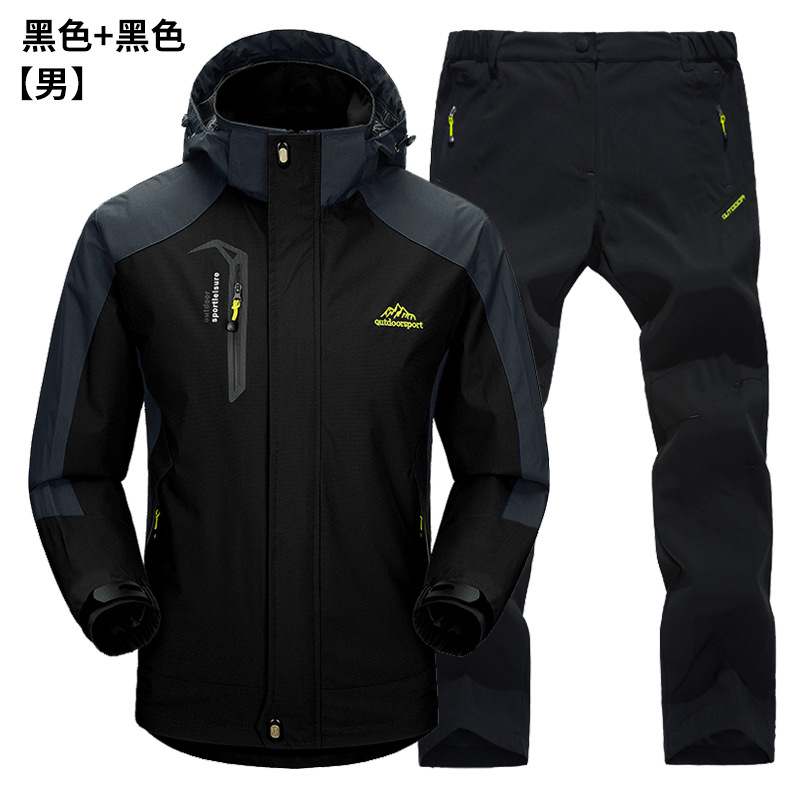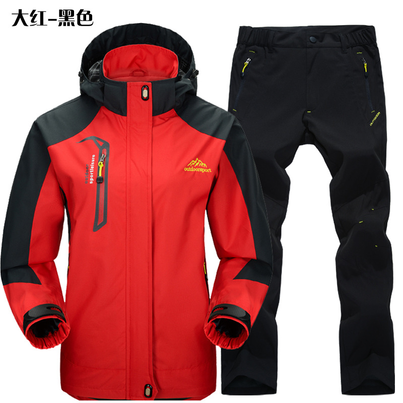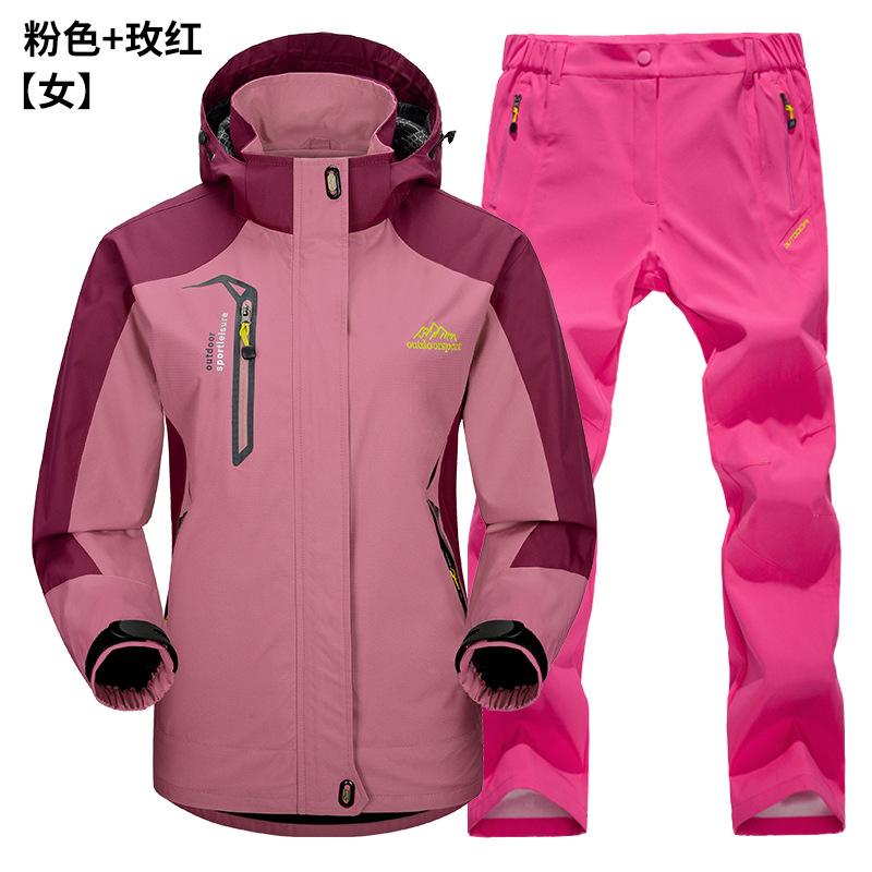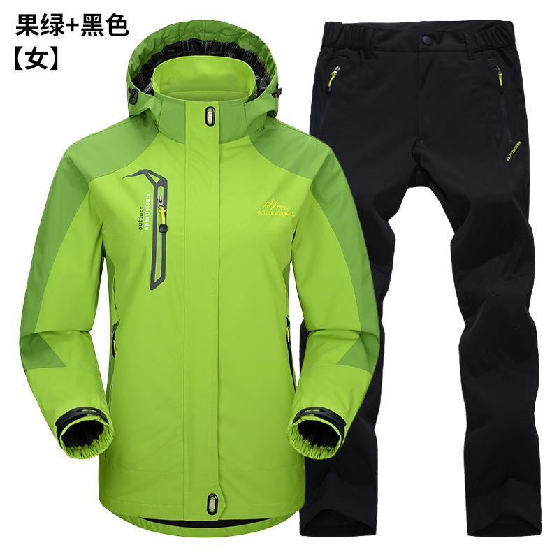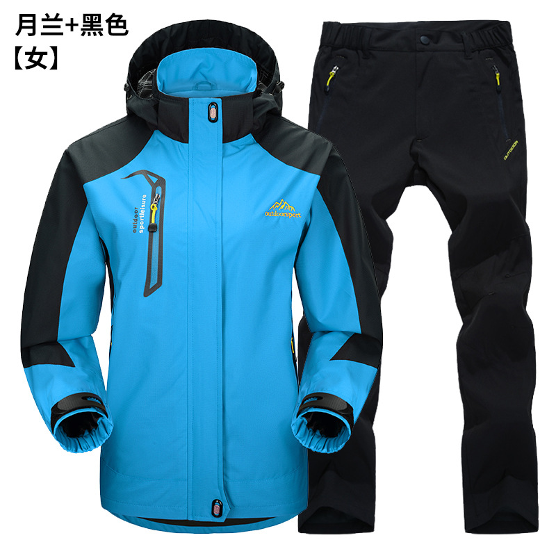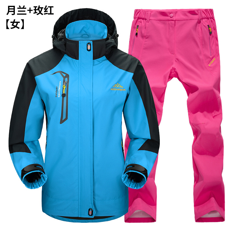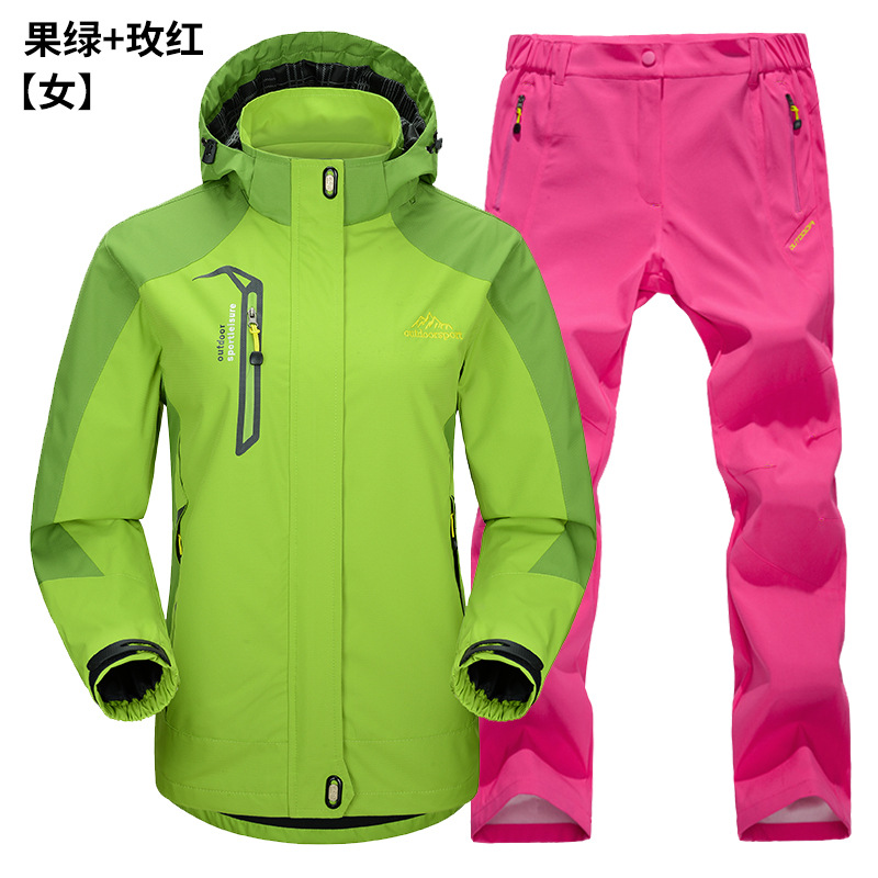 공장 직접 도매 야외 단일 레이어 충전 바지 남성과 여성 커플 세트 방풍 방수 봄과 가을 등산 세트
