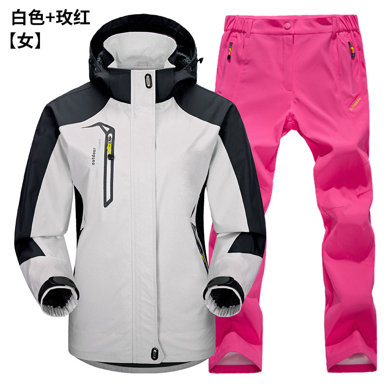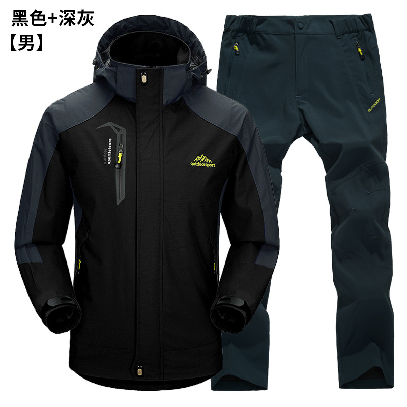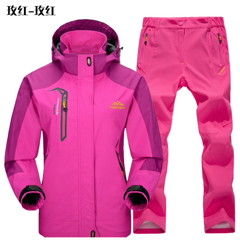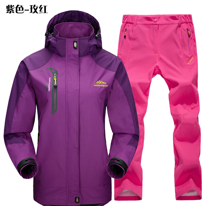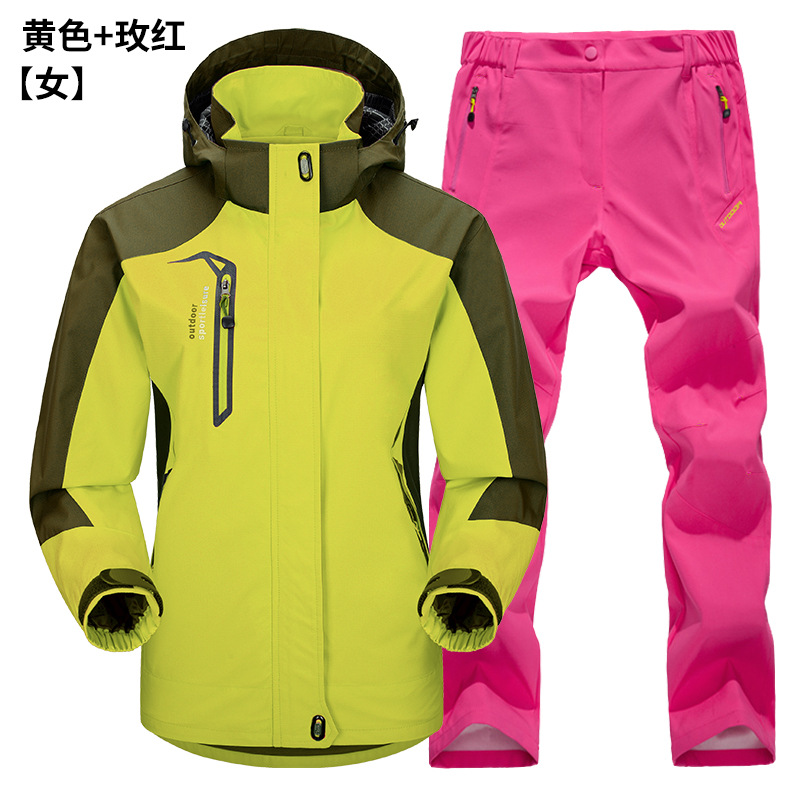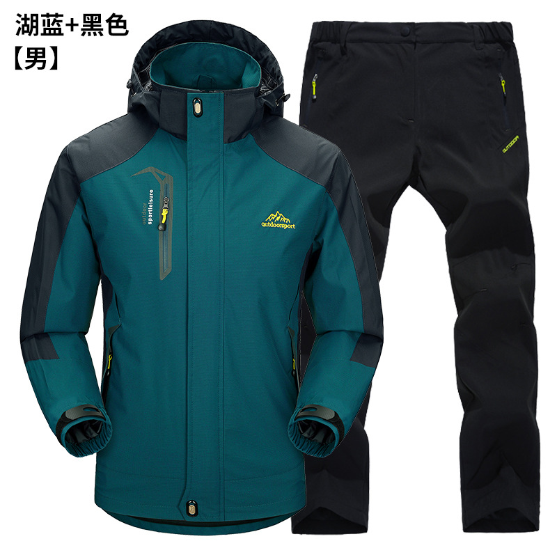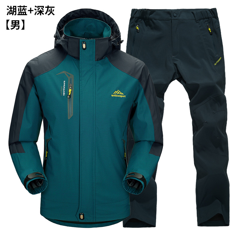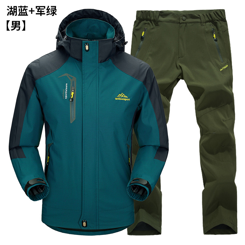 공장 직접 도매 야외 단일 레이어 충전 바지 남성과 여성 커플 세트 방풍 방수 봄과 가을 등산 세트