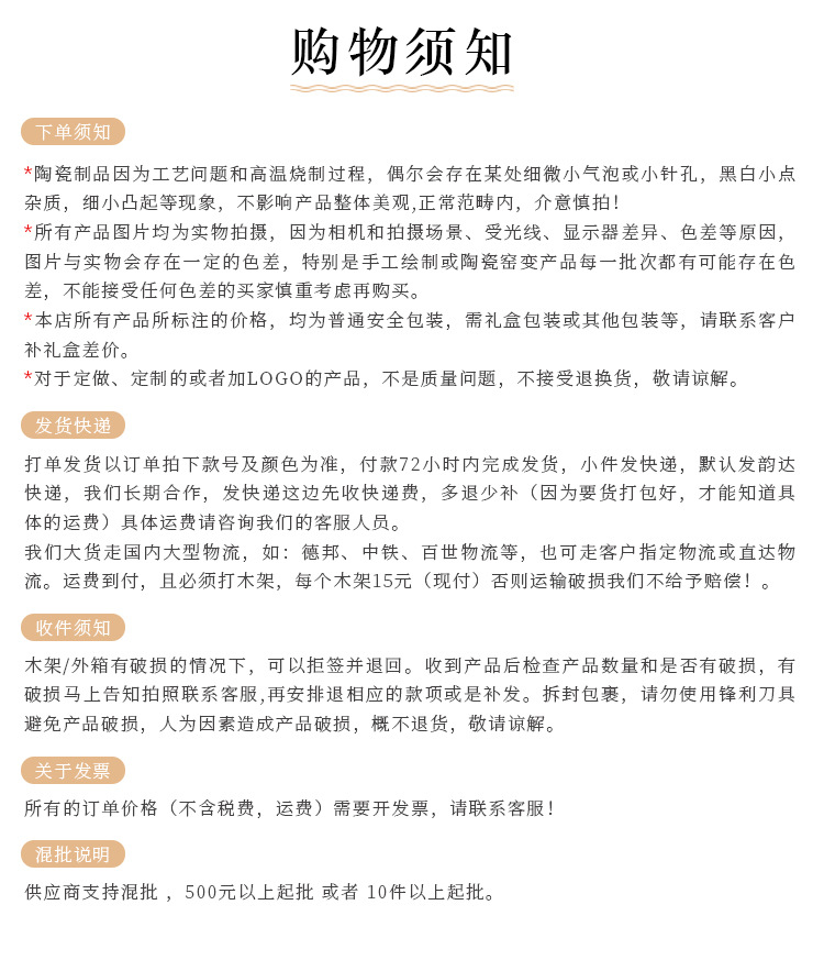 3:下单无金额限制,产品一箱起批,支持混批,敬请谅解。