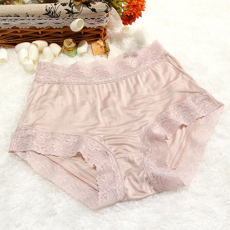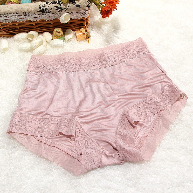 여름 여성용 뽕나무 실크 원활한 여성용 실크 속옷 천연 피부 친화적 인 하이 웨이스트 레이스 플랫 속옷스토어 가기