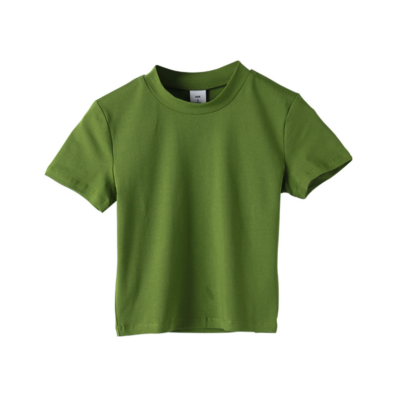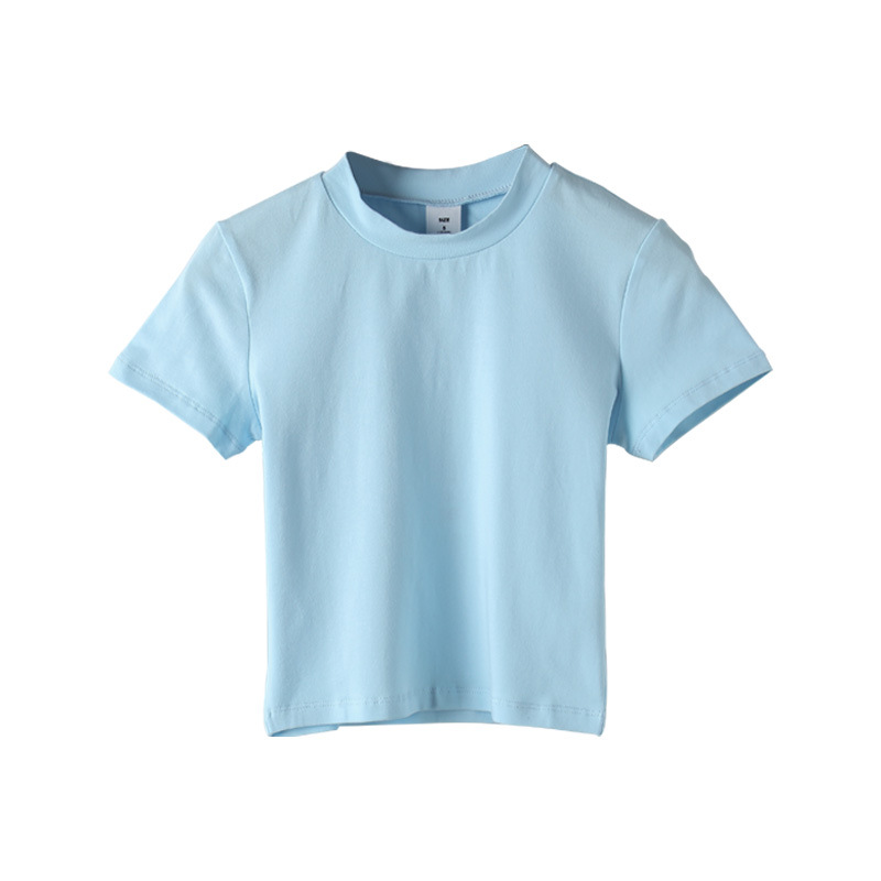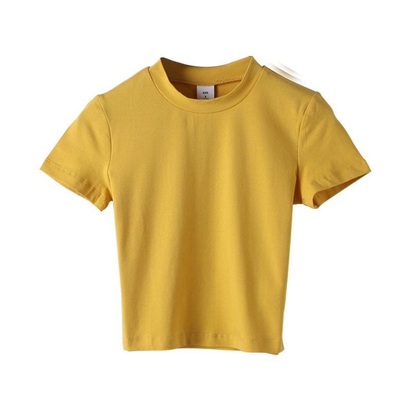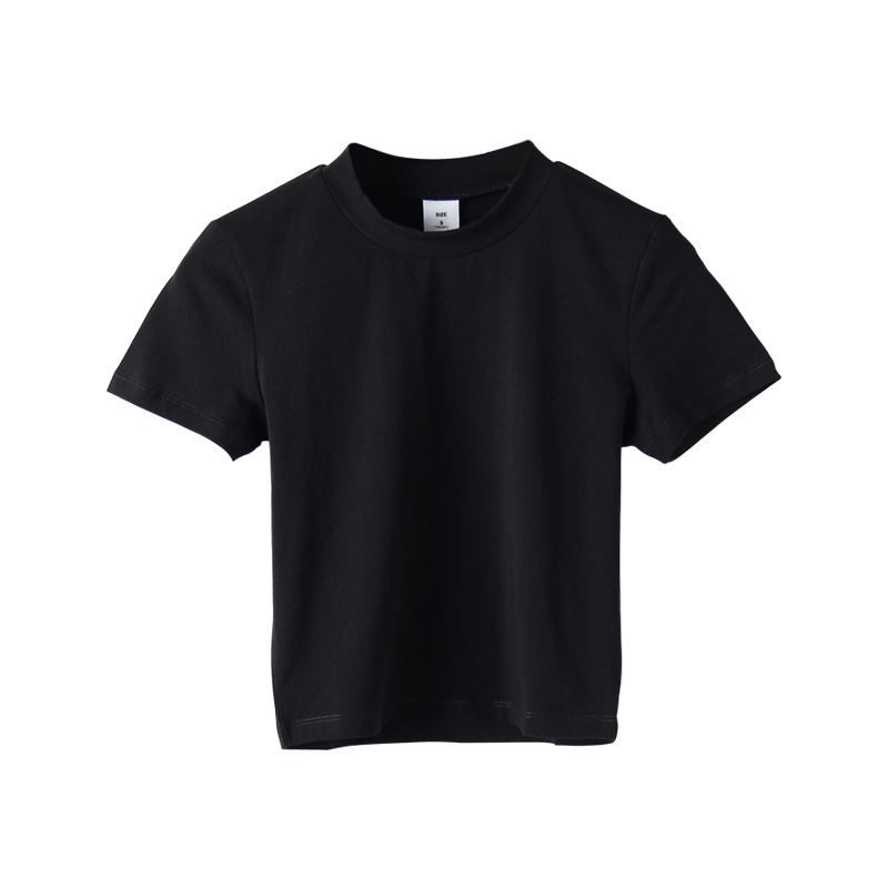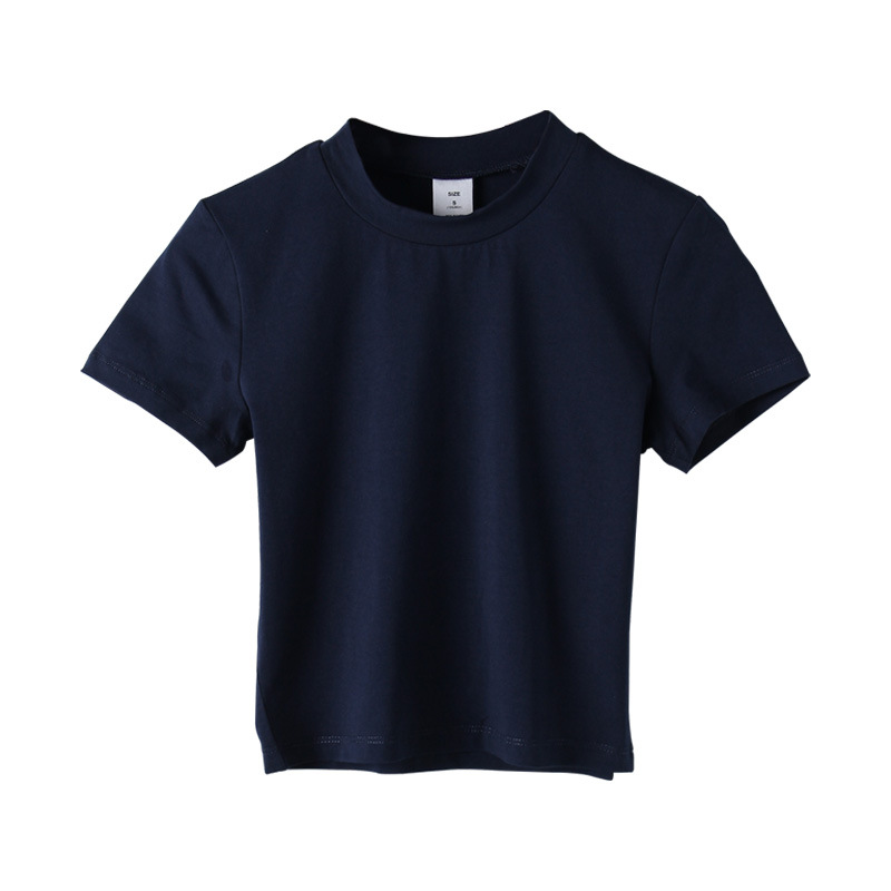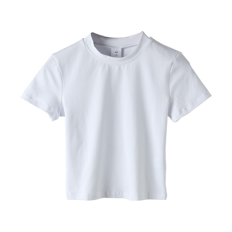 2022 새로운 한국 스타일 하이 넥 배꼽 노출 흰색 티셔츠 반팔 슬림 여성 여름 코튼 티셔츠 원피스 드롭 배송 기본 셔츠 027
