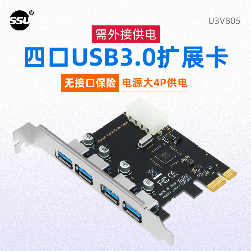 데스크탑 컴퓨터 USB3.0 확장 카드 4포트 PCI-E-USB3.0 확장 카드 어댑터 카드 USB3.0HUB스토어 가기