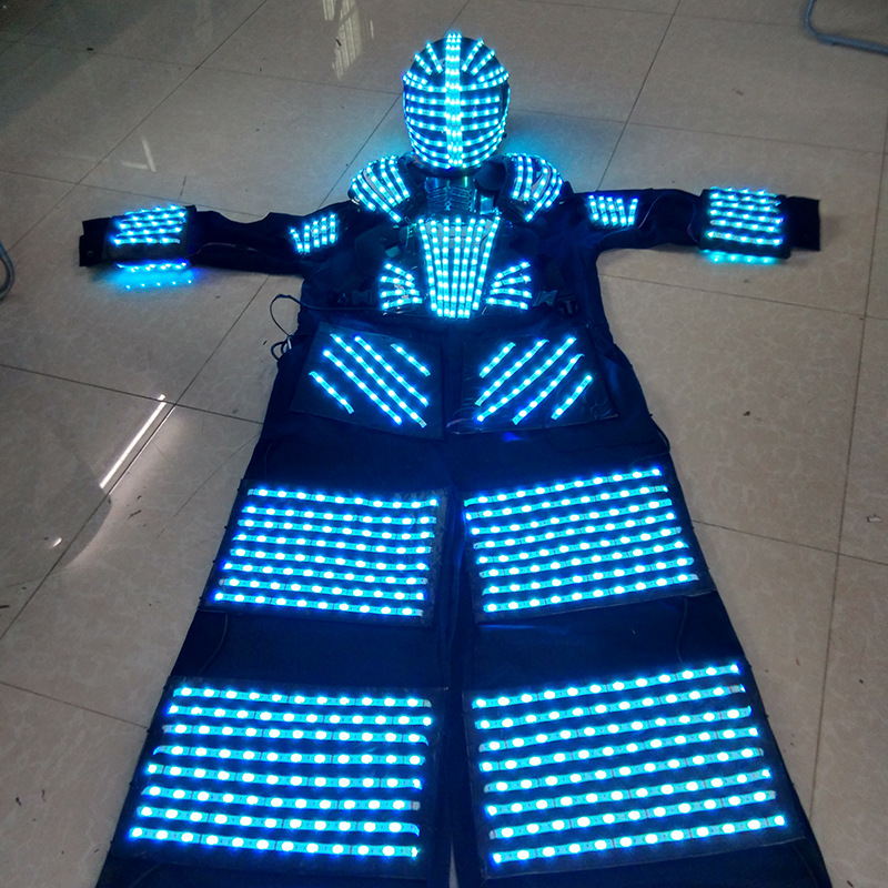 다채로운 LED 빛나는 광대 죽마 세트 높은 로봇 의류 레이저 장갑 LED 레이저 의류 안경