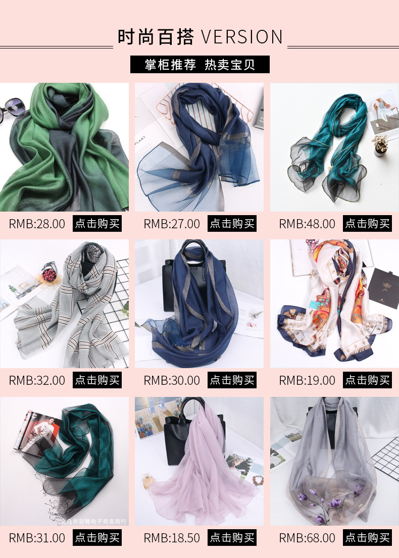 가을과 겨울 새로운 뽕나무 실크 그라데이션 실크 스카프 실크 코튼 린넨 긴 스카프 목도리 이중 목적 여성 봄과 가을 스카프스토어 가기