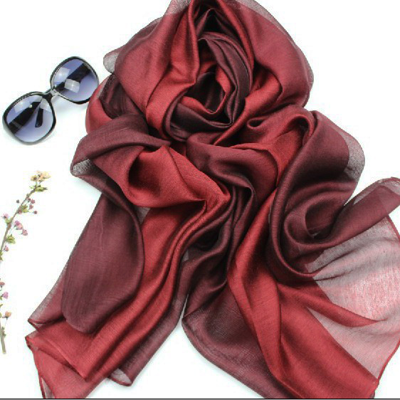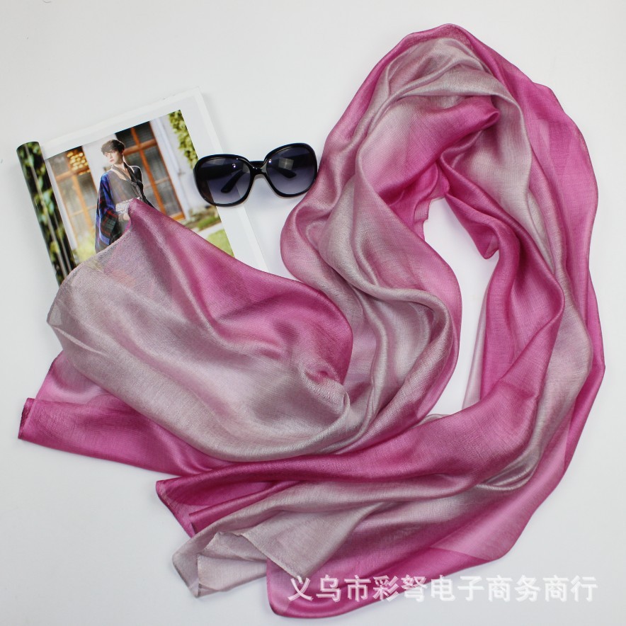 가을과 겨울 새로운 뽕나무 실크 그라데이션 실크 스카프 실크 코튼 린넨 긴 스카프 목도리 이중 목적 여성 봄과 가을 스카프