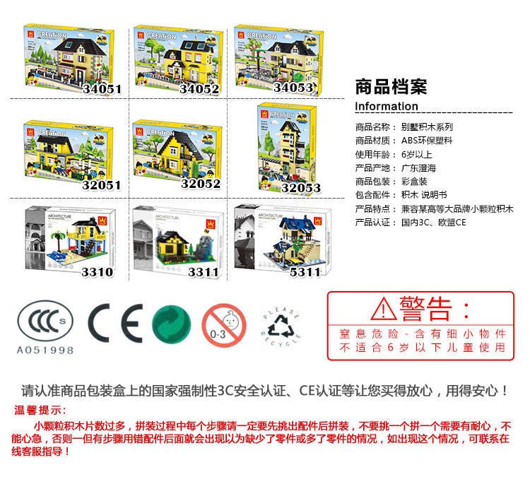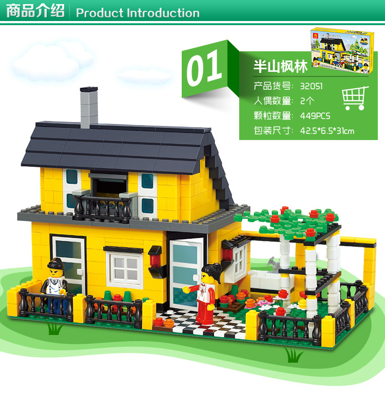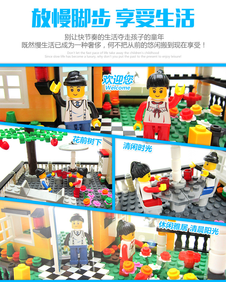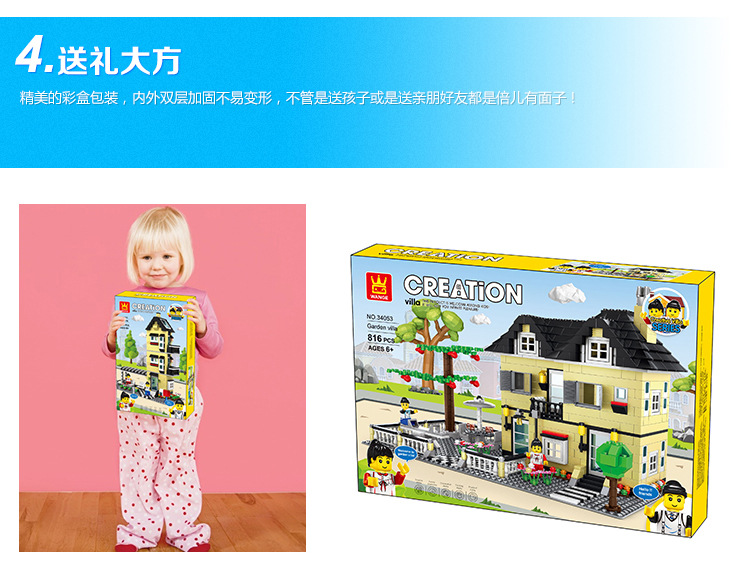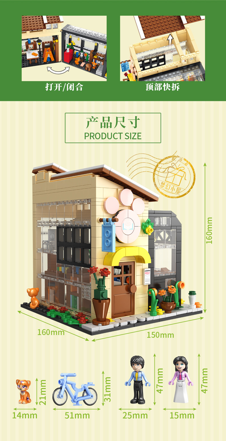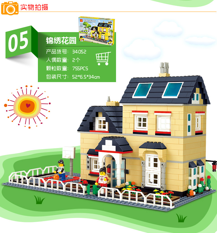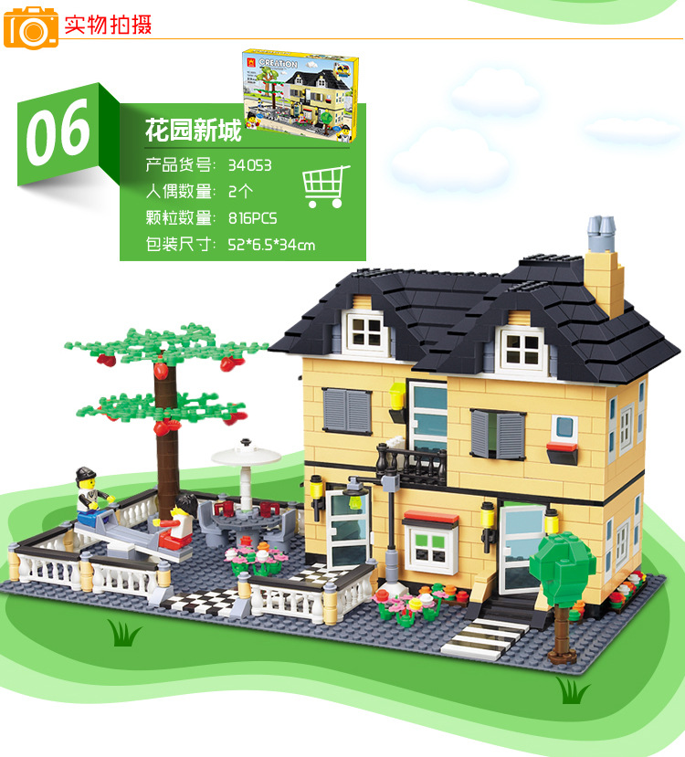 소년 소녀 Wange 빌라 빌딩 블록 플라스틱 조립 어린이 교육 장난감 우표 마이크로 공급스토어 가기