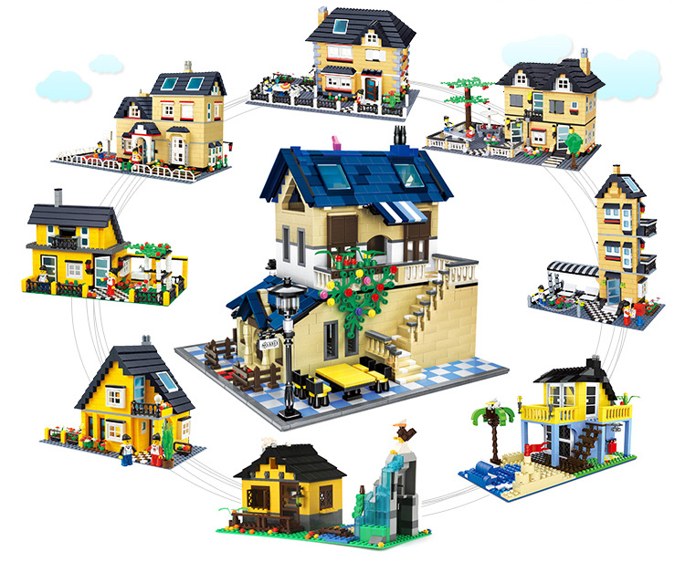 소년 소녀 Wange 빌라 빌딩 블록 플라스틱 조립 어린이 교육 장난감 우표 마이크로 공급