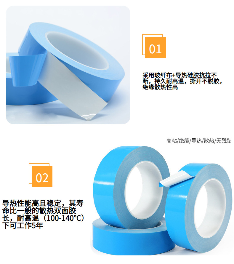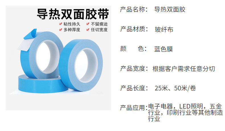 국경 간 열 전도성 양면 접착 고온 저항 단열 블루 필름 유리 섬유 열 전도성 테이프 LED 패널 조명 고정 방열 접착제스토어 가기
