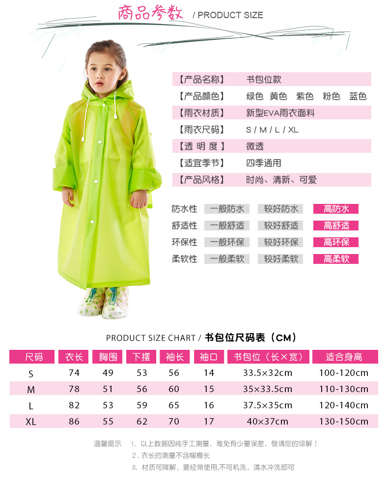 남학생과 여학생을 위한 책가방이 포함된 아동용 비옷, 긴 원피스 크로스보더 비옷, EVA 두꺼운 맞춤형 로고