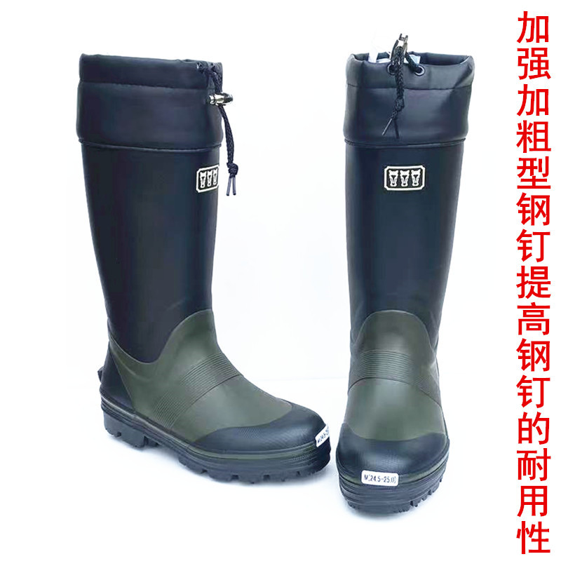 남자의 강철 못 바닥 장화 높은 장화 고무 슬라이딩 야외 낚시 신발 아라타 낚시 신발 패션 눈 신발 고무 신발