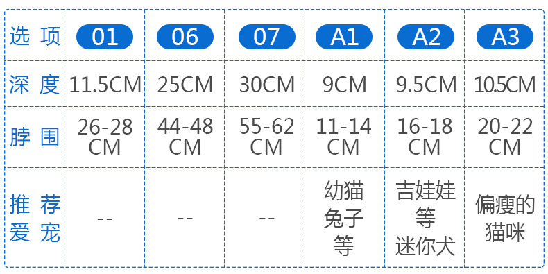 • A6 (목 둘레 32-38cm 깊이 16.00cm