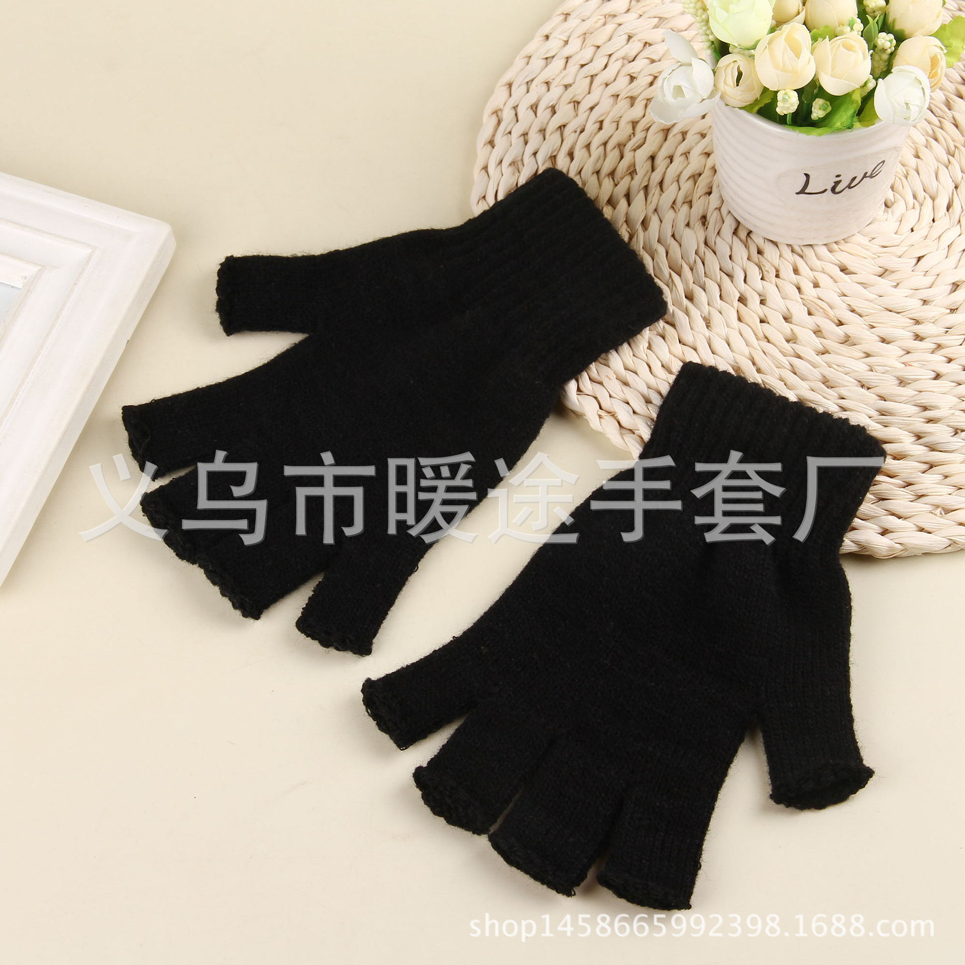 겨울 단색 단색 따뜻한 핑거리스 남성과 여성 학생 쓰기 장갑 작업 니트 반 손가락 장갑 공장 직접 판매스토어 가기