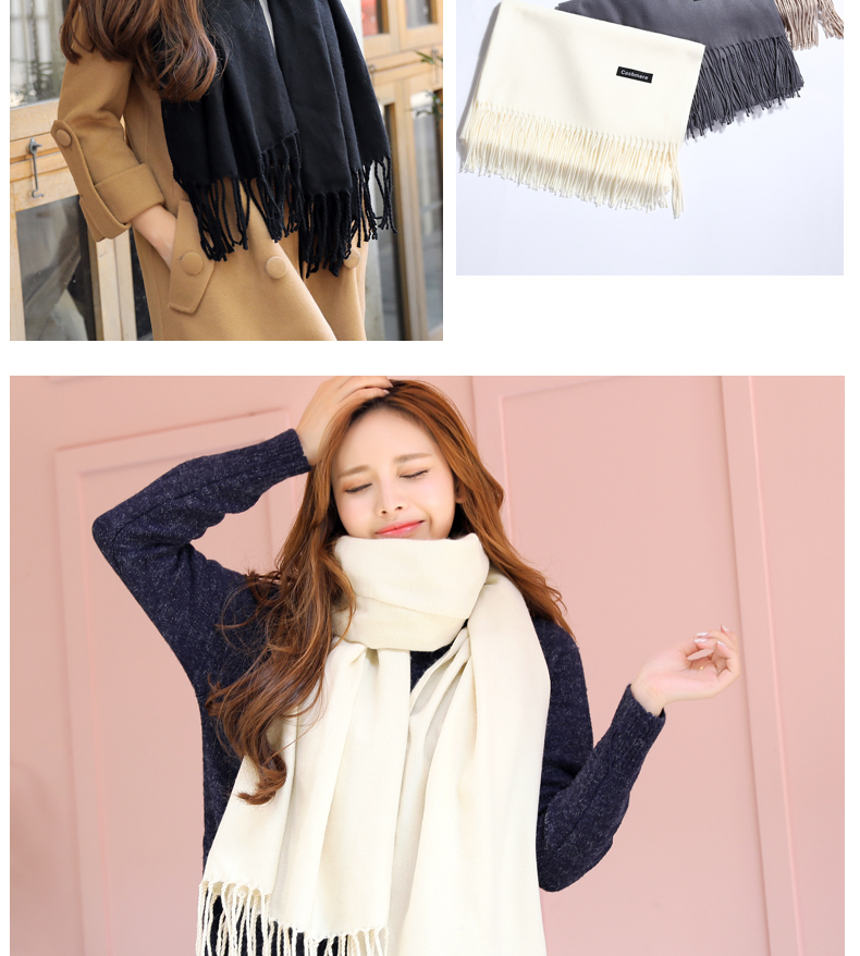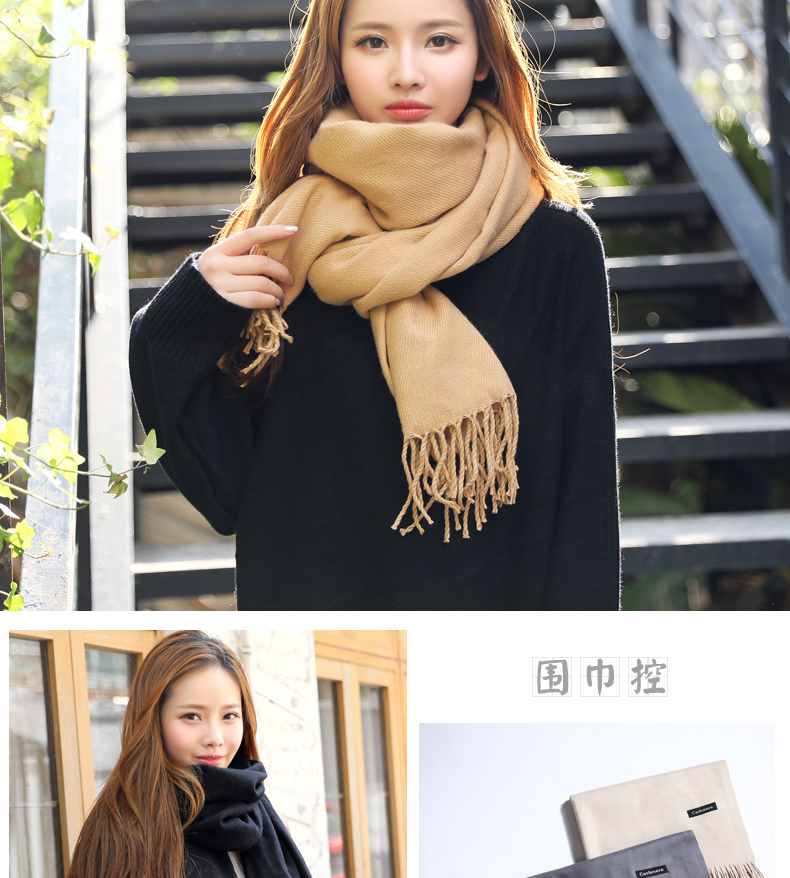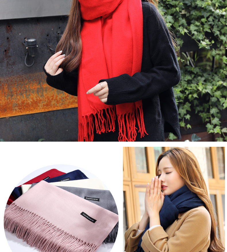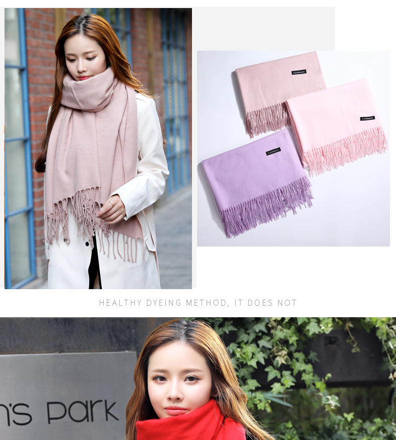 모방 캐시미어 스카프 두꺼운 단색 술 긴 스카프 이중 목적 여성의 가을과 겨울 따뜻한 학생 큰 목도리 도매스토어 가기