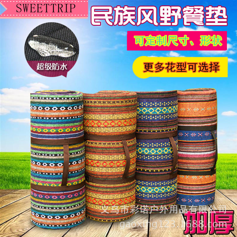 에스닉 스타일 습기 방지 매트 야외 다인용 피크닉 매트 방수 초대형 두꺼운 잔디 비치 매트 200