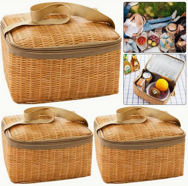 대외 무역 모조 등나무 충격 방지 단열 도시락 가방 야외 피크닉 방수 신선 유지 도시락 가방 알루미늄 필름 단열 가방