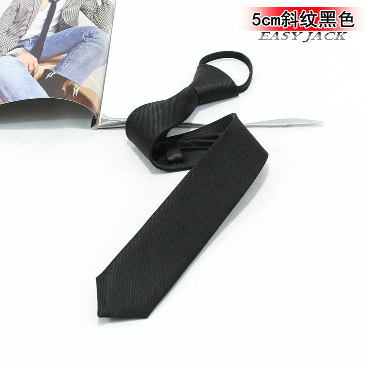 5cm 유행 캐주얼 한국 스타일 좁은 판 쉽게 풀 게으른 지퍼 넥타이 남자의 정장 비즈니스 블랙 단색 학생 여성스토어 가기