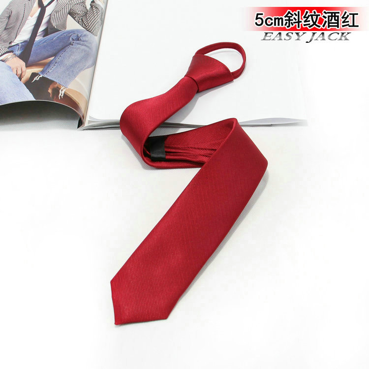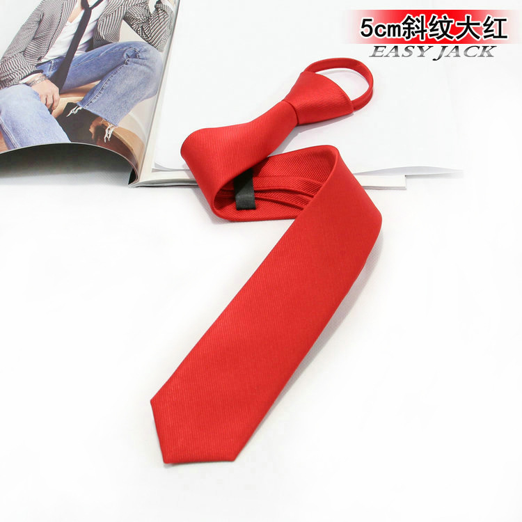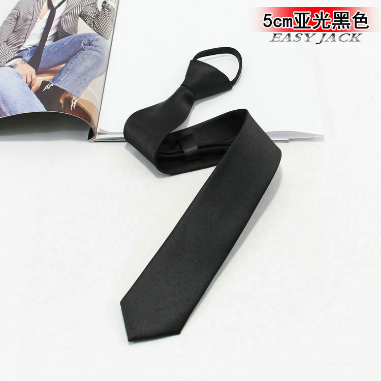5cm 유행 캐주얼 한국 스타일 좁은 판 쉽게 풀 게으른 지퍼 넥타이 남자의 정장 비즈니스 블랙 단색 학생 여성
