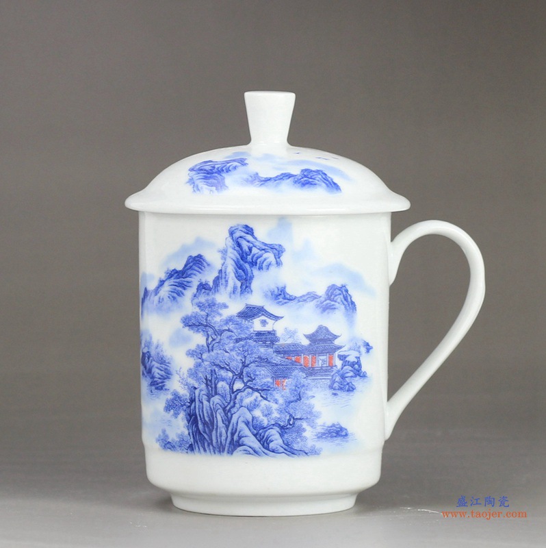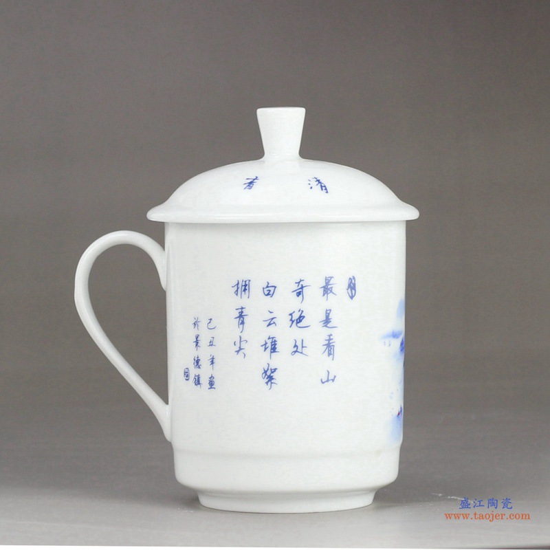 Jingdezhen 세라믹 파란색과 흰색 도자기 차 컵 화이트 옥 도자기 보스 컵 오피스 컵 워터 컵 공장 도매스토어 가기
