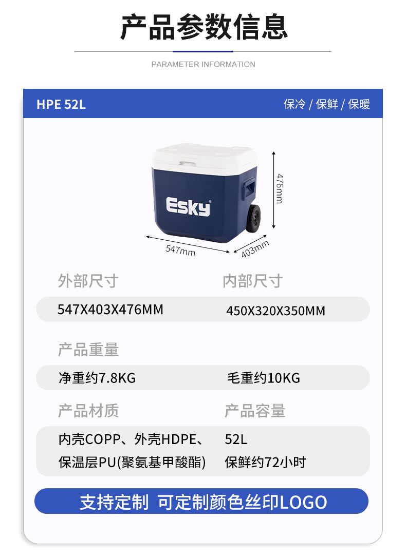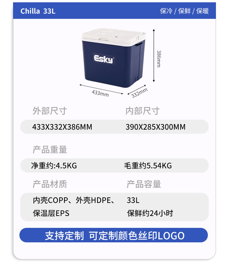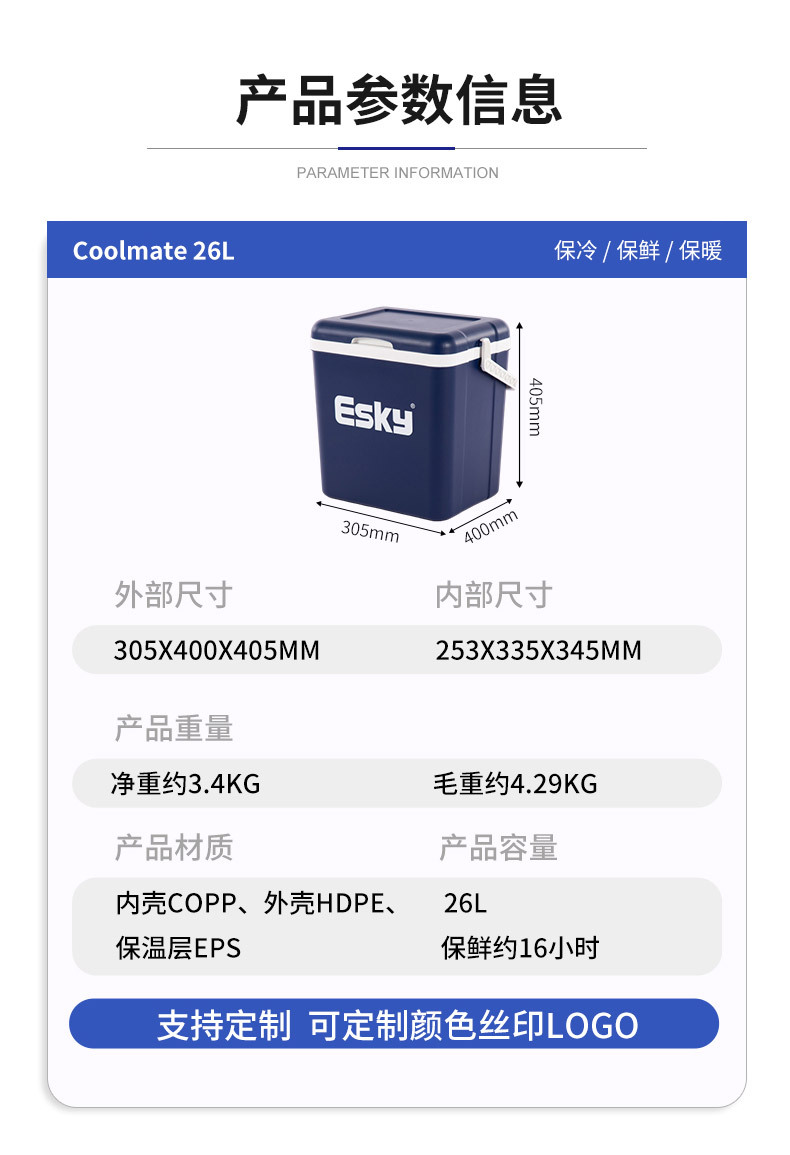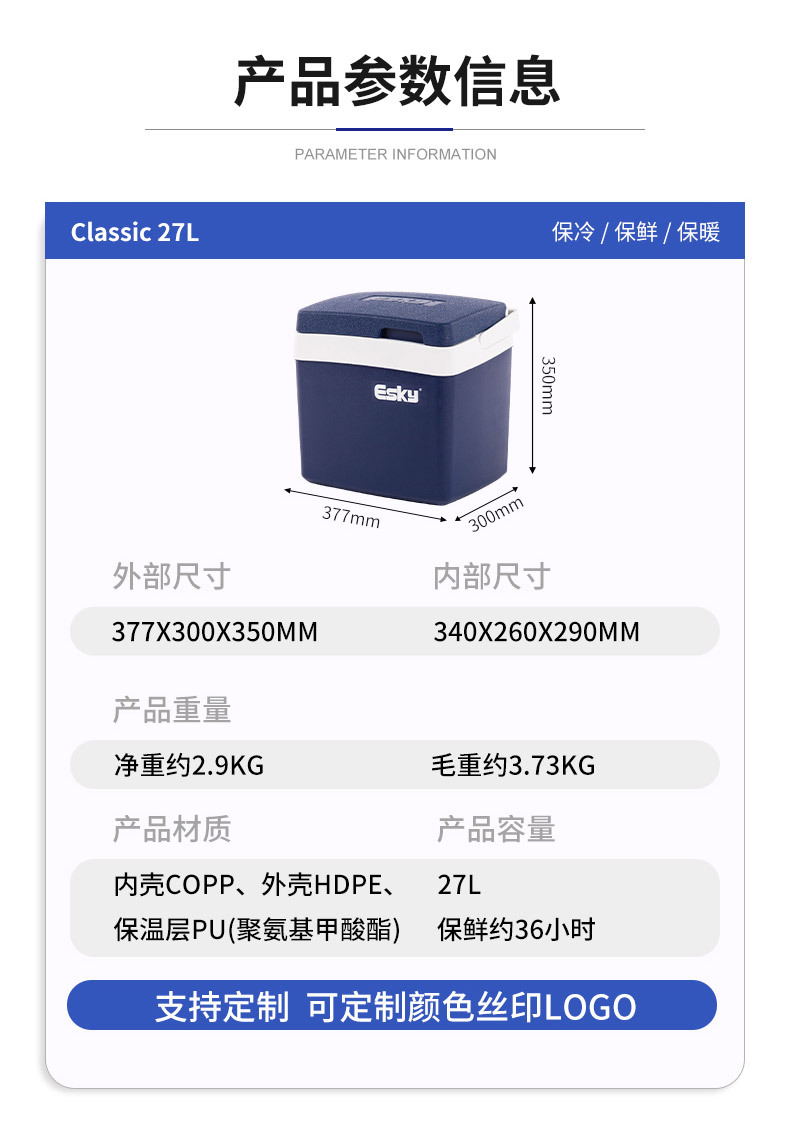ESKY 절연 상자 야외 휴대용 캠핑 피크닉 PU 냉장 및 신선 유지 테이크 아웃 해산물 자동차 식품 쿨러 상자