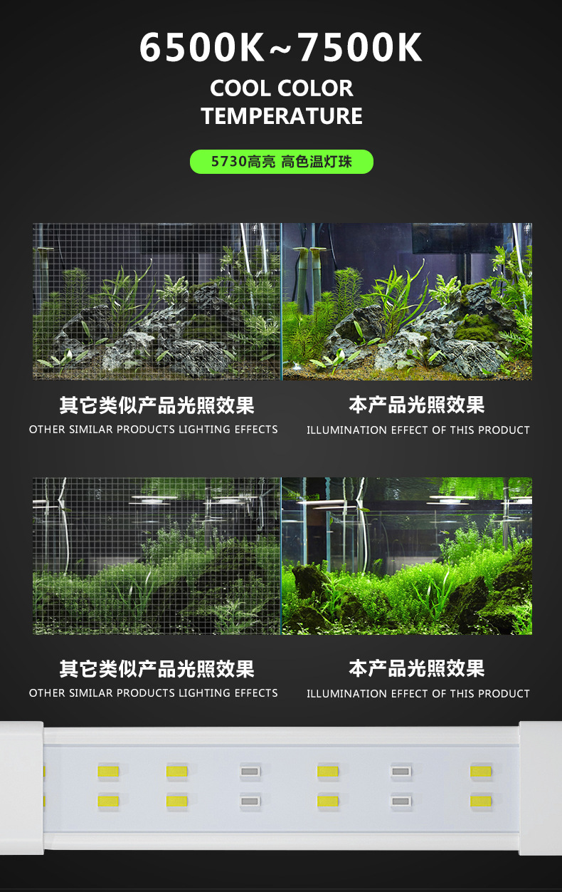小鱼缸灯跨境LED灯架草缸 欧美英规水族照明灯亚马逊四排可变色灯