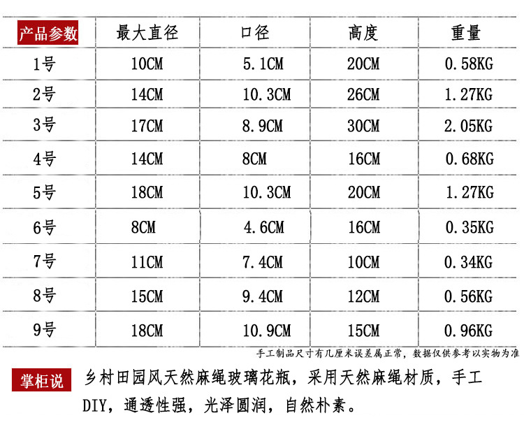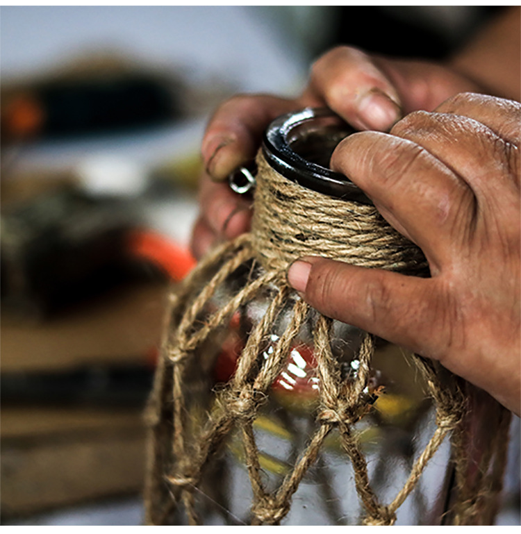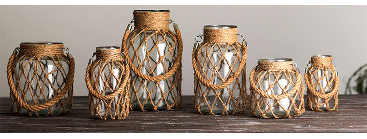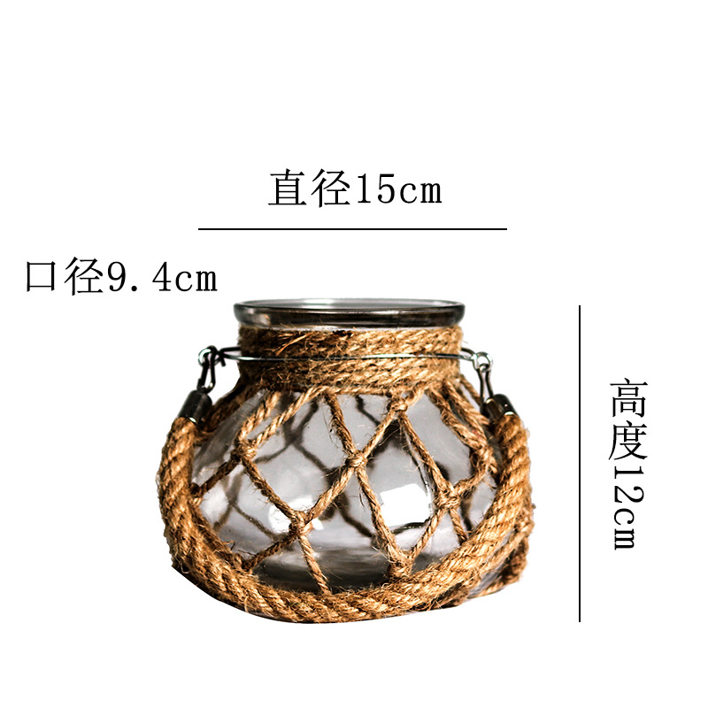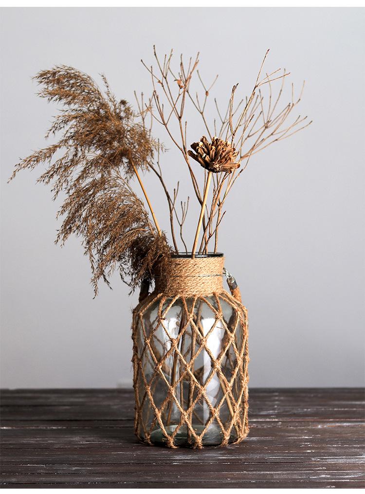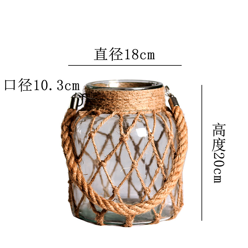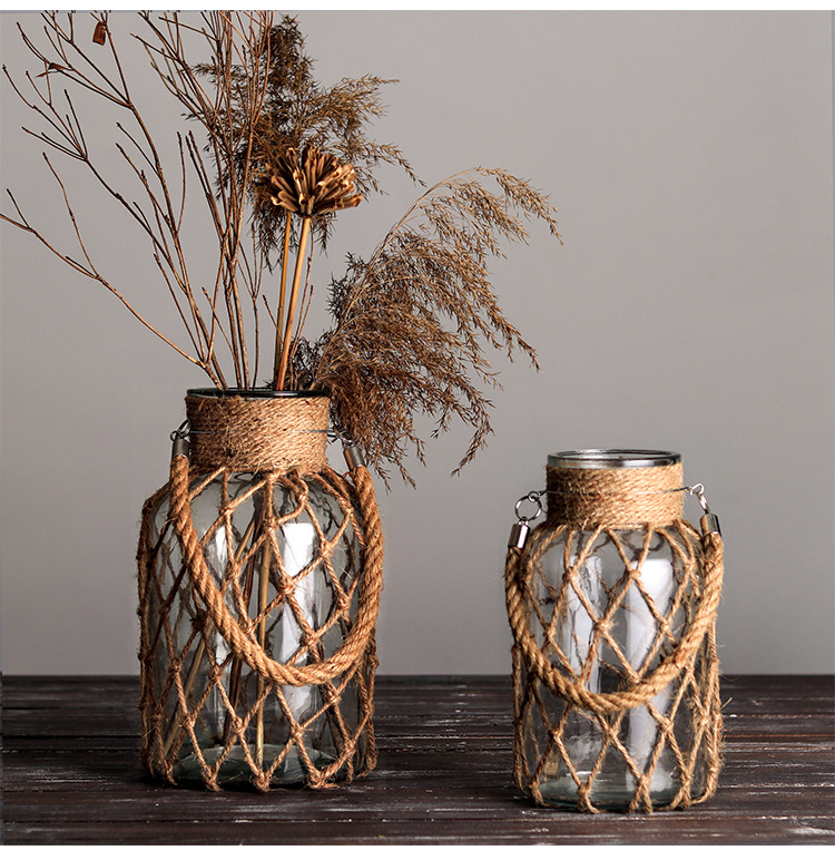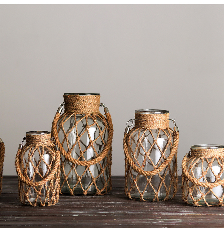 손으로 짠 대마 밧줄 유리 투명 꽃병 도매 미국 장식 장식품 꽃 도자기 크리 에이 티브 수경 복고풍 꽃병스토어 가기