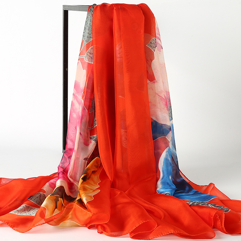 2024 시폰 비치 타월 새로운 여름 시뮬레이션 실크 대형 실크 스카프 태양 보호 목도리 인쇄 선물 스카프