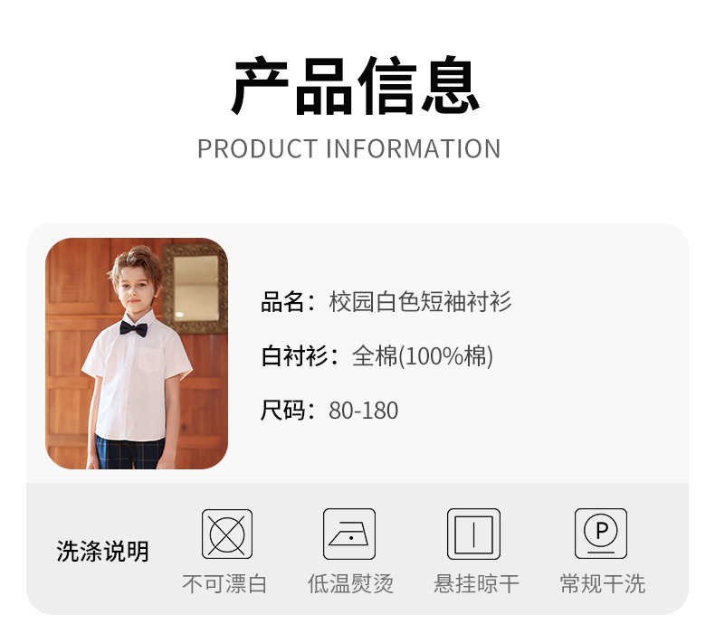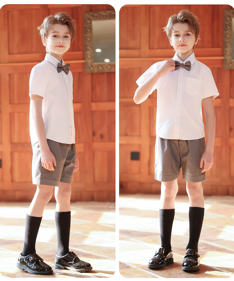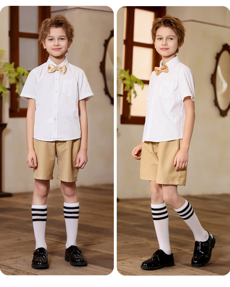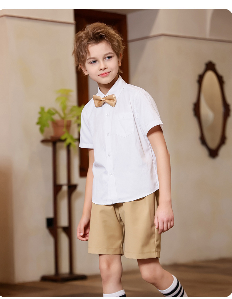 아동용 반팔 흰색 셔츠 남아 여름 반팔 흰색 셔츠 여아 공연복 초등학생 교복 셔츠
