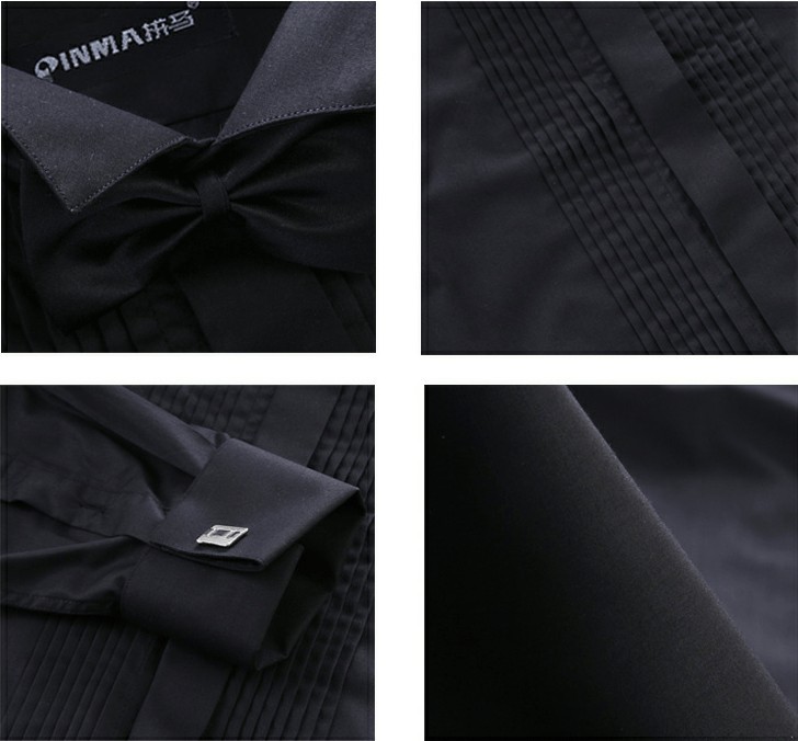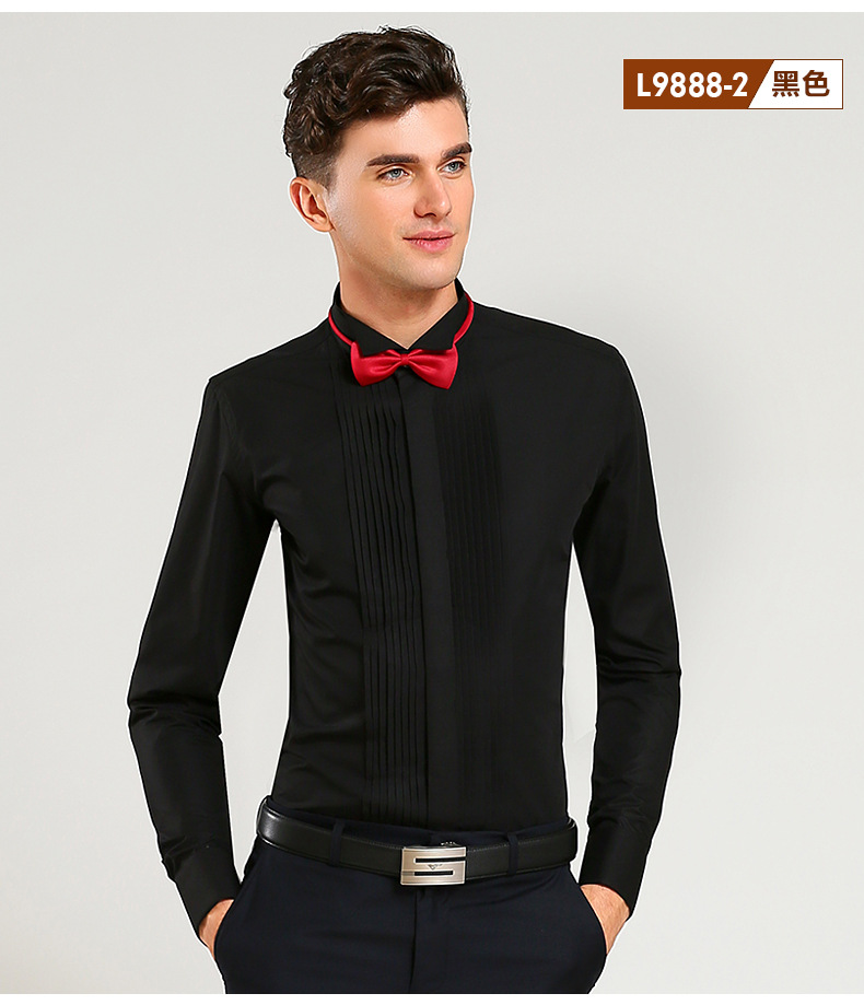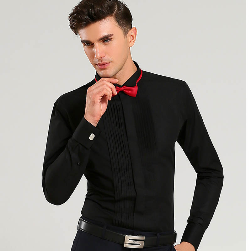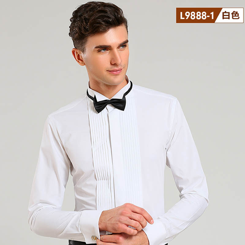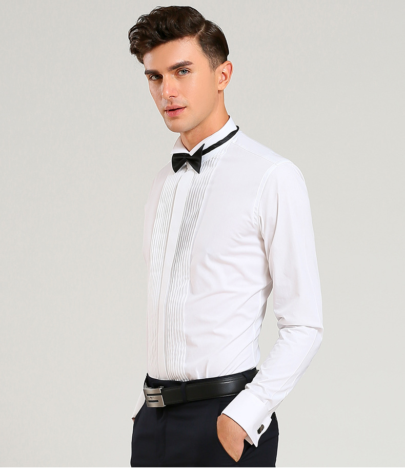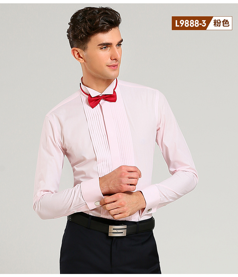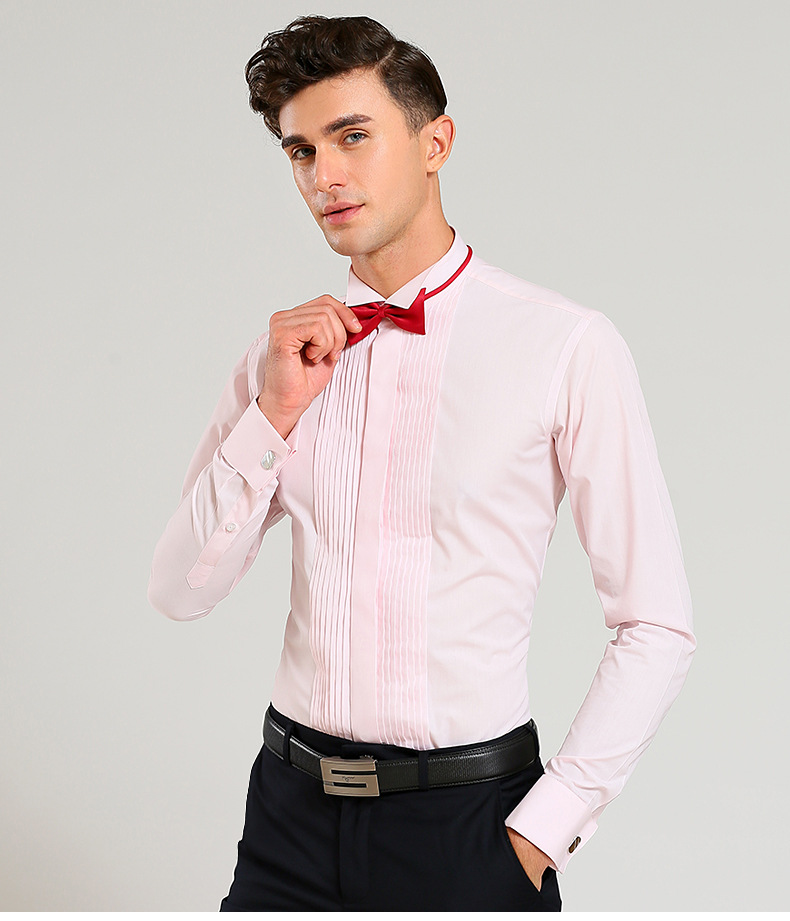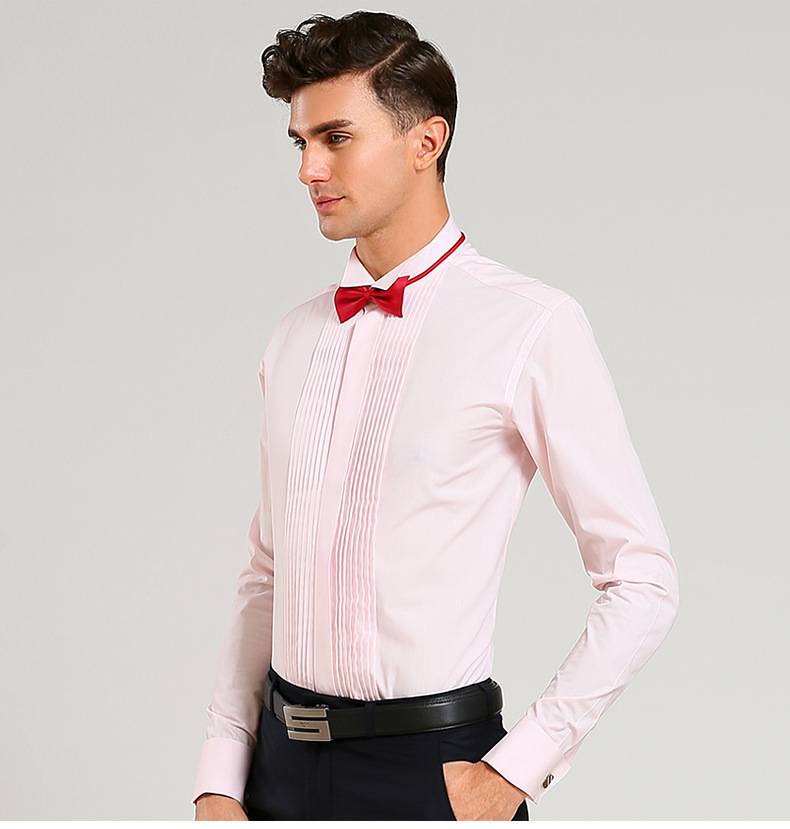 봄 신랑 결혼식 백색 핑크 고급 면 셔츠 남자의 긴 소매 제비 칼라 프랑스 커프스 단추 웨딩 셔츠