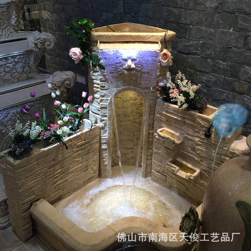 유럽식 흐르는 물 분수 호텔 장식 물 풍경 바위 흐르는 물 실내 가습 행운의 거실 바닥 장식품스토어 가기