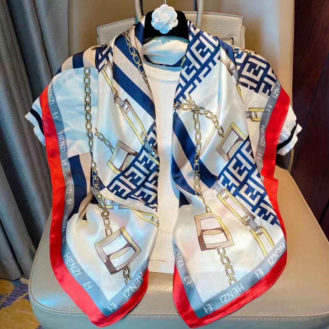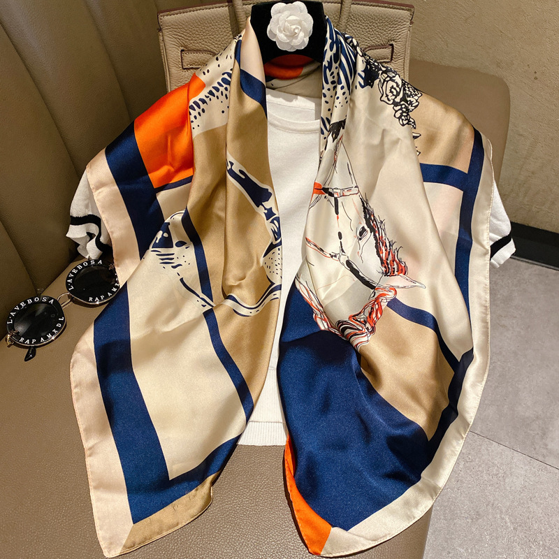 유럽과 미국 신규 제조 업체 도매 90 실크 스카프 모조 실크 인쇄 장식 흑백 줄무늬 90 대 사각 스카프 목도리 세대 헤어스토어 가기