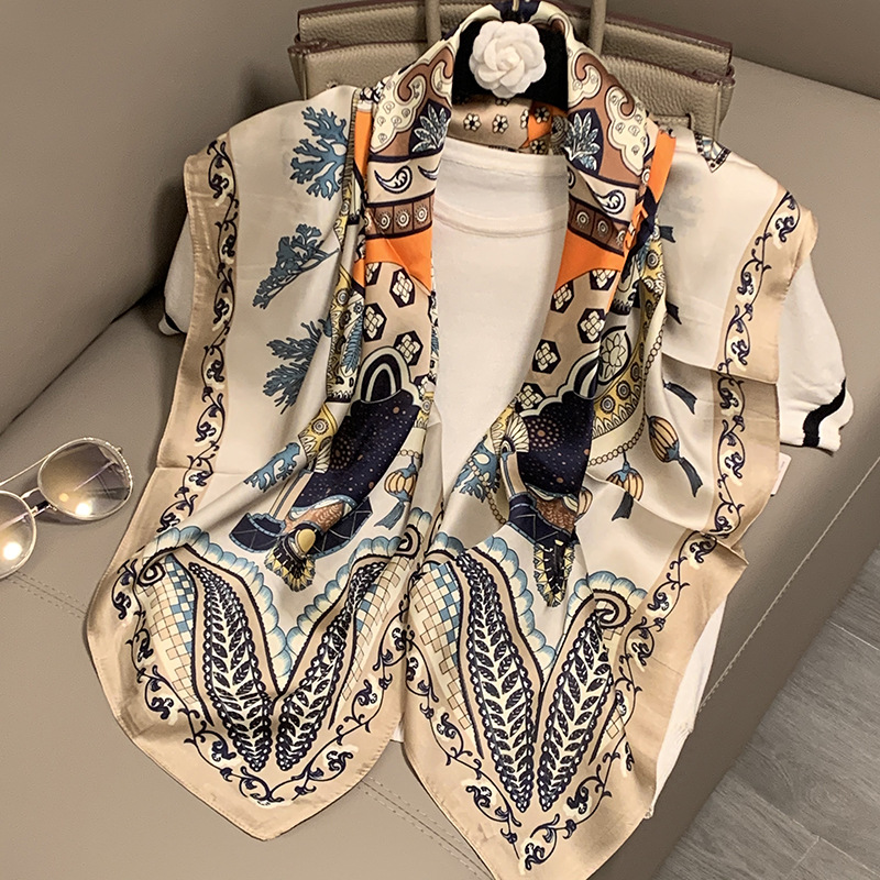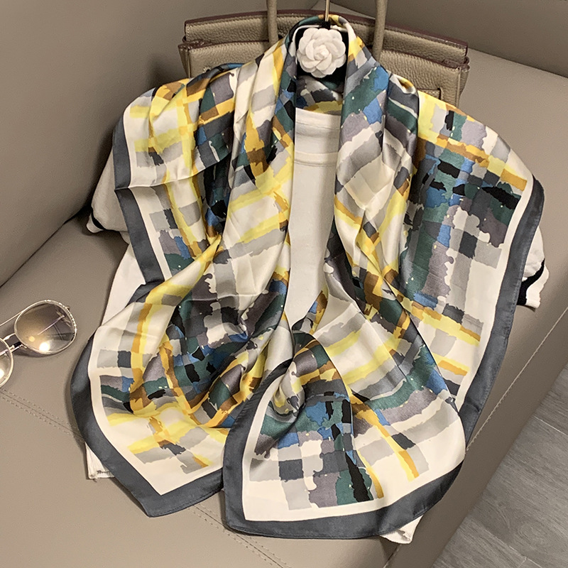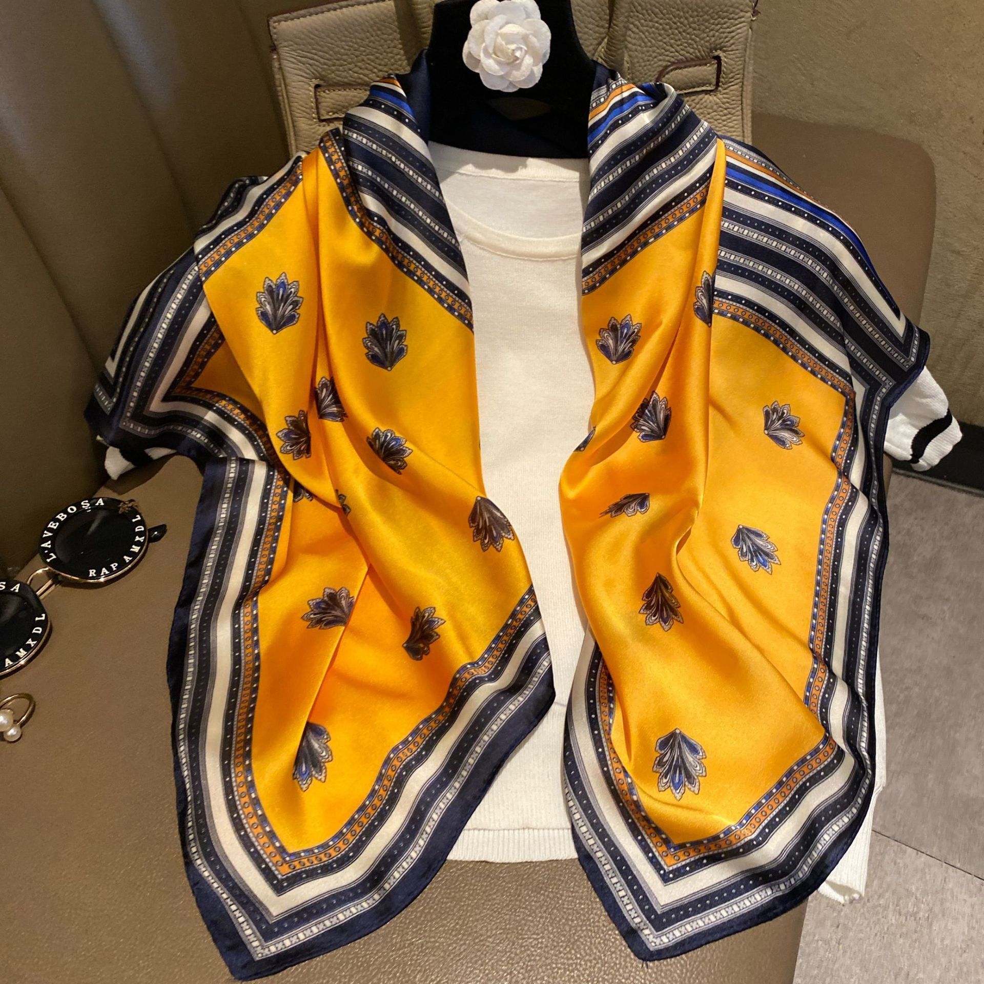 유럽과 미국 신규 제조 업체 도매 90 실크 스카프 모조 실크 인쇄 장식 흑백 줄무늬 90 대 사각 스카프 목도리 세대 헤어