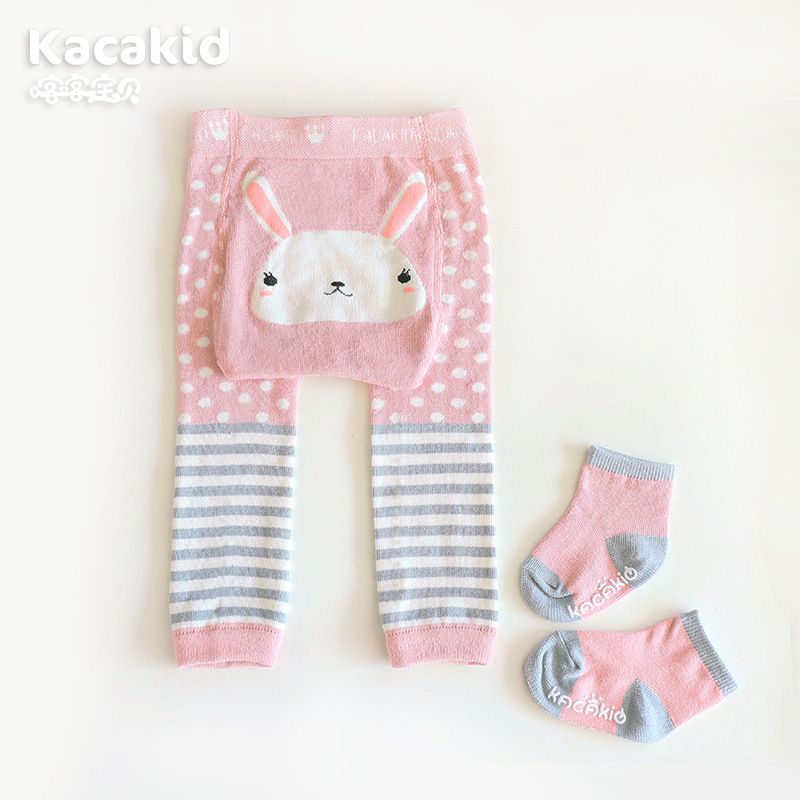 가을 겨울 아기 하이 웨이스트 배꼽 보호 바지 귀여운 소년 소녀 대형 PP 바지 아기 레깅스 양말 투피스 세트