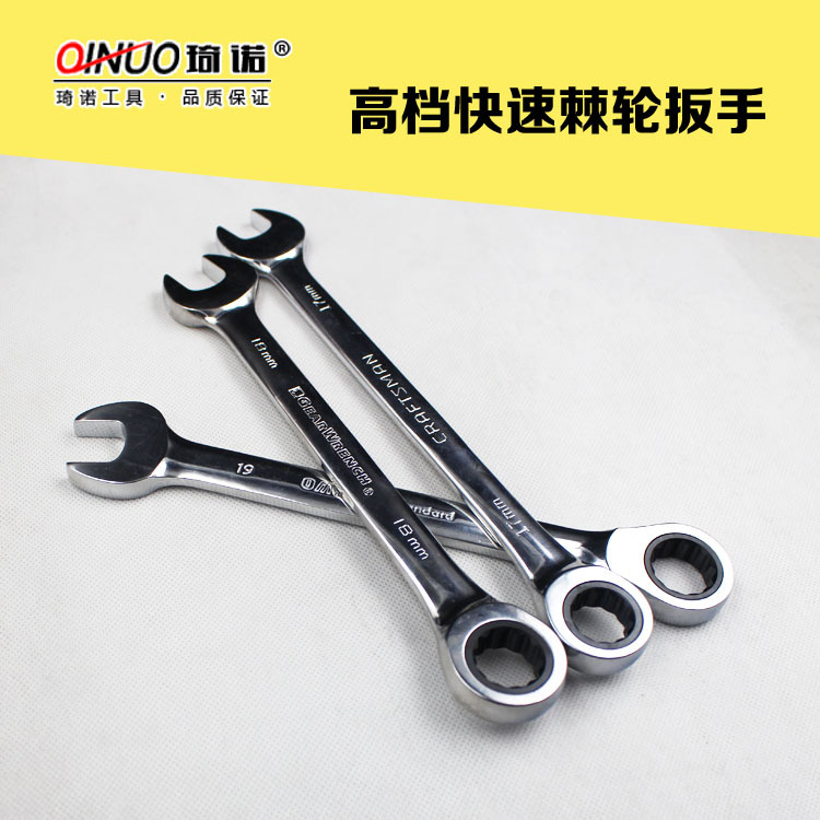 两用棘轮扳手选用高碳钢锻打,整体热处理,镜面抛光,精密加工。72齿设计,转动一次仅需5度,适合狭窄空间使用和长螺杆的快速拆卸。