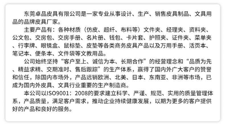 本工厂以按客户需求订制生产皮具产品为主,同时销售自有品牌皮具产品。