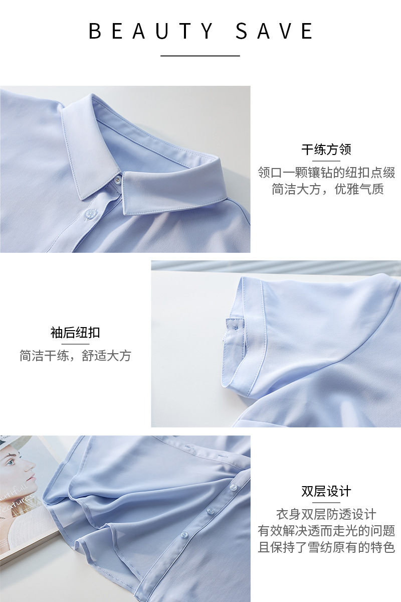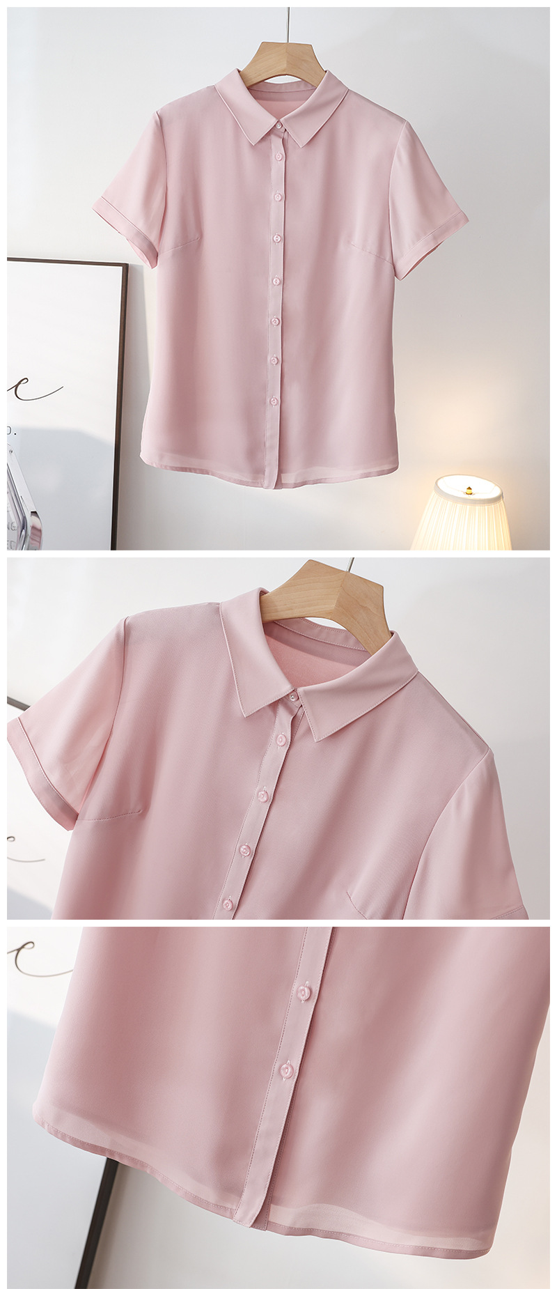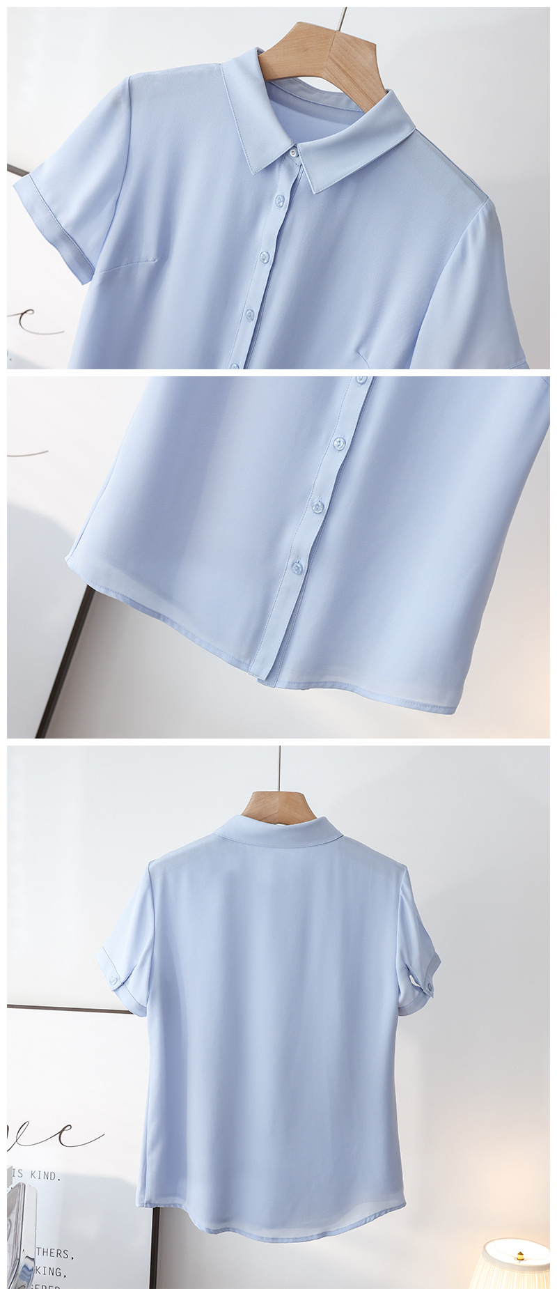 봄과 여름 작업 옷 반팔 쉬폰 화이트 셔츠 여성 드래핑 피부 친화적 인 패션 통기성 인터뷰 전문 셔츠 탑스토어 가기