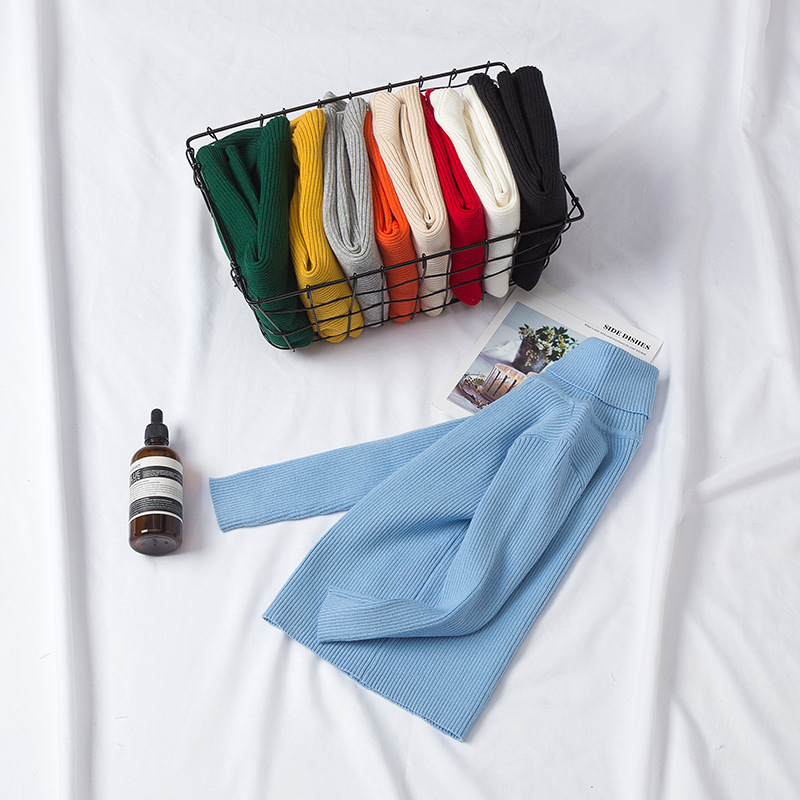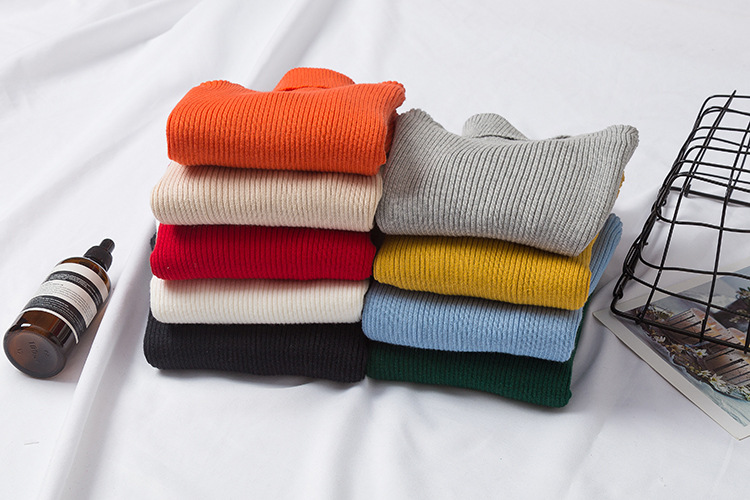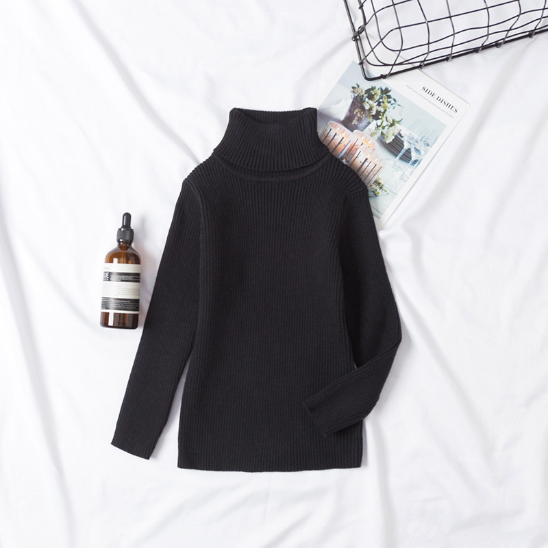 2022 패션 한국 단색 가을과 겨울 캐주얼 패션 어린이를위한 니트 하이 넥 코튼 캔디 컬러베이스 스웨터스토어 가기