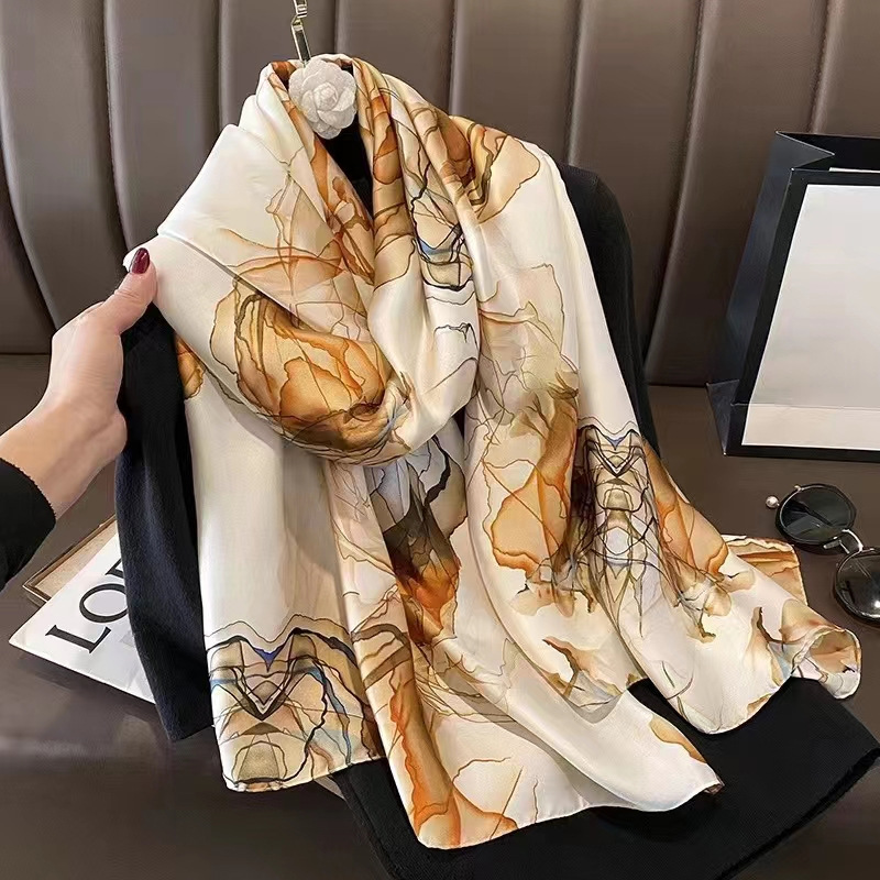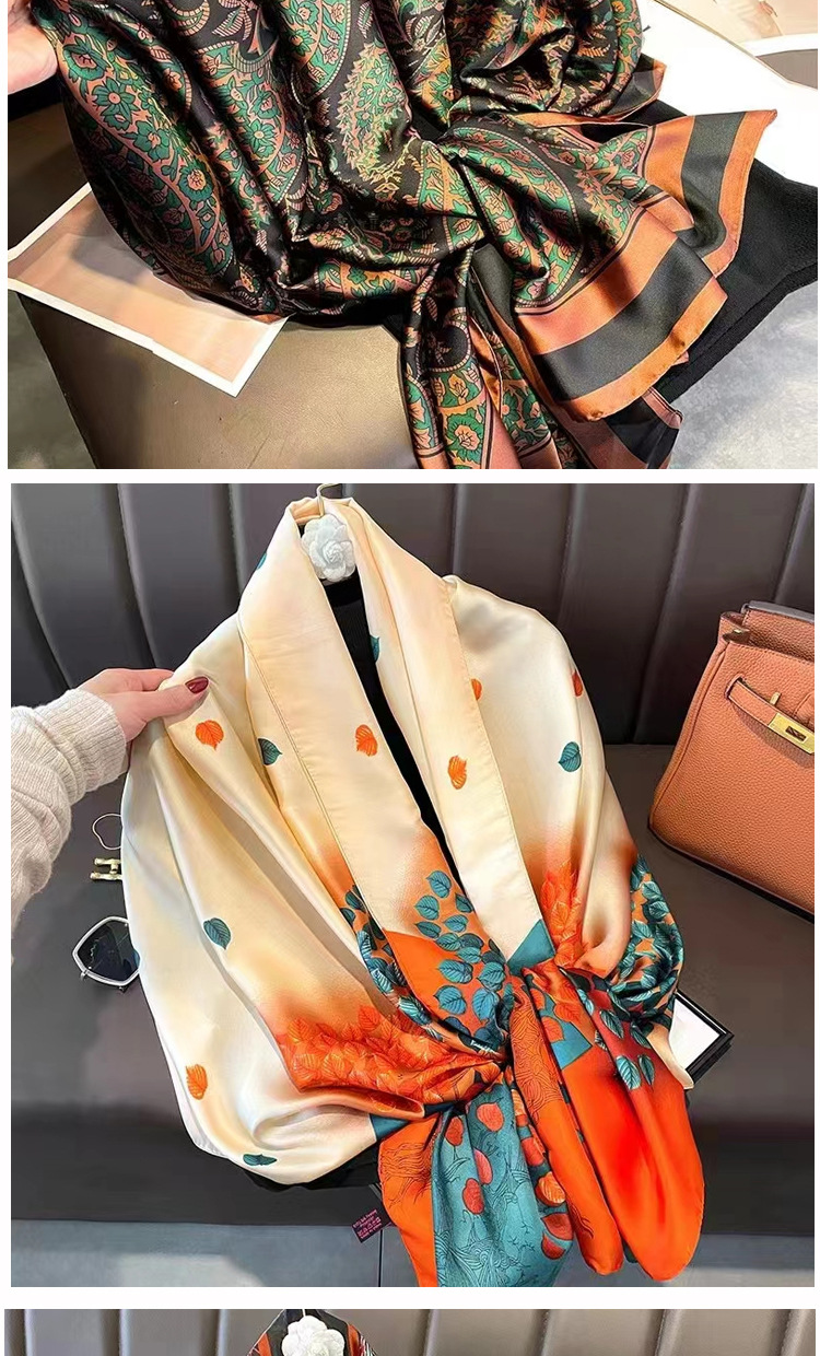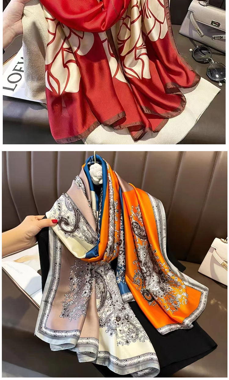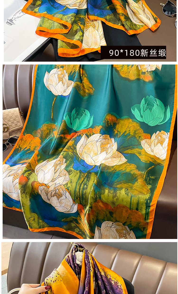 로맨틱 공작 대형 숄 가을 베이지 블루 동물 깃털 인쇄 새로운 실크 새틴 모조 실크 스카프 긴 스카프스토어 가기