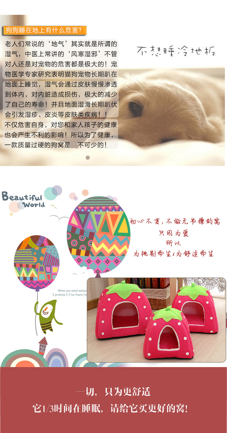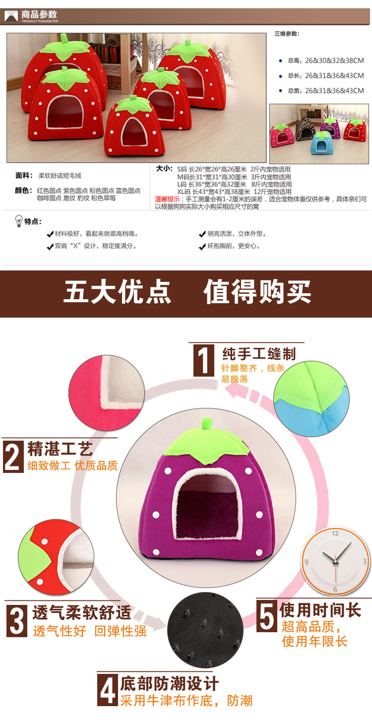 겨울 애완견 용품 고양이 방 개 개집 고양이 개집 딸기 개집 토끼 개집 이동식 및 빨 애완 동물 매트 도매