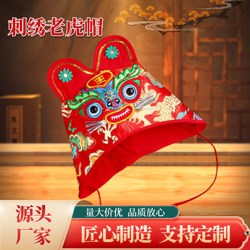 소년 소녀 아기 브로케이드 얼굴 자수 호랑이 모자 생일 주 사진 어린이 아기 모자 호랑이 모자
