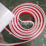同步带是以钢丝绳或玻璃纤维为强力层,外覆以聚氨酯或氯丁橡胶的环形带,带的内周制成齿状,使其与齿形带轮啮合。同步带传动时,传动比准确,对轴作用力小,结构紧凑,耐油,耐磨性好,抗老化性能好,一般使用温度-20℃―80℃,v<50m/s,P<300kw,i<10,对于要求同步的传动也可用于低速传动。
