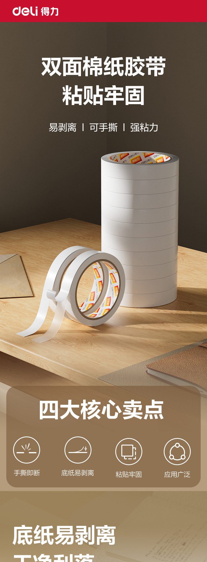 델리 30402 양면 접착 테이프 1.8cm * 10y 흰색 접착제 양면 접착 테이프 사무실 용품 문구스토어 가기