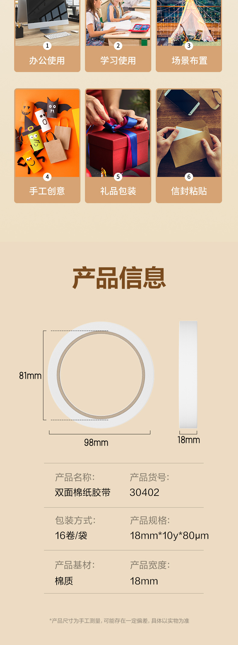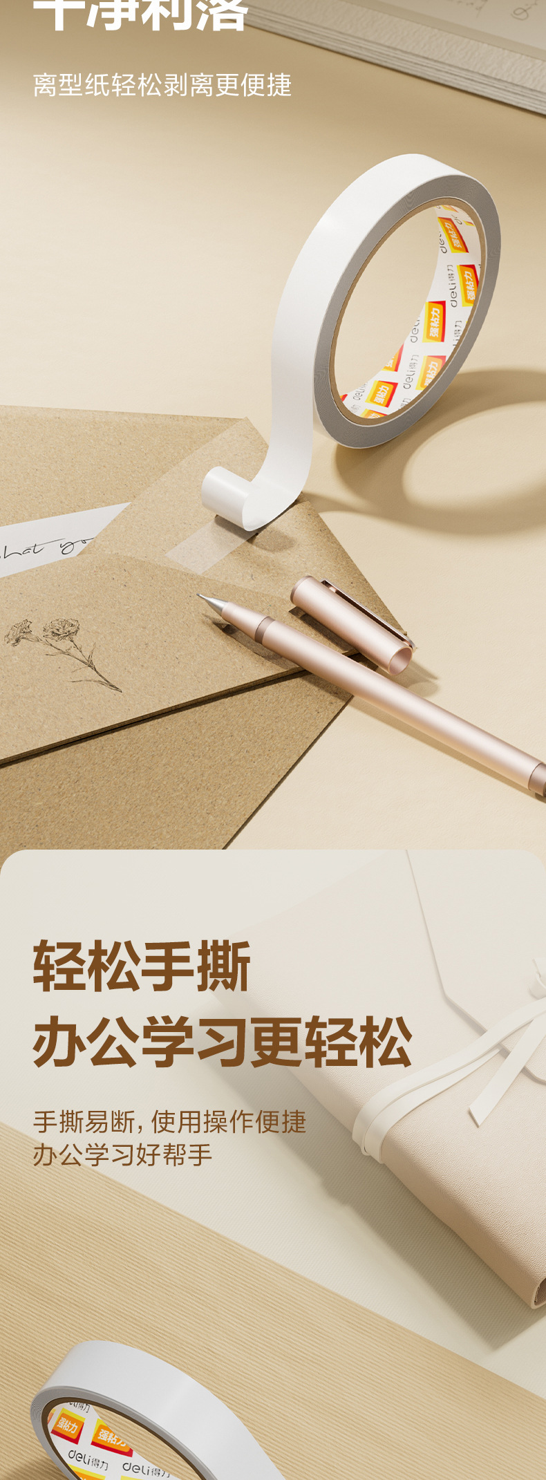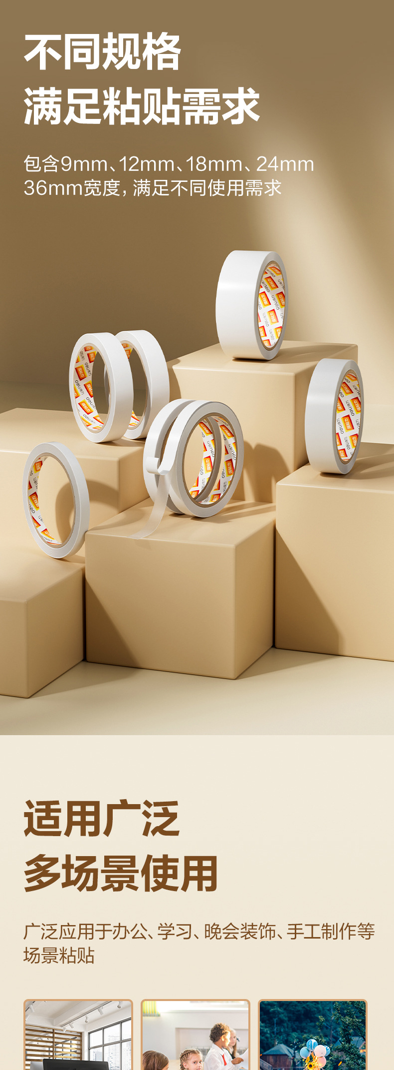 델리 30402 양면 접착 테이프 1.8cm * 10y 흰색 접착제 양면 접착 테이프 사무실 용품 문구