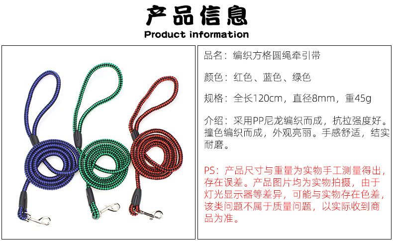 공장 도매 체크 무늬 라운드 로프 애완 동물 가죽 끈 나일론 개 가죽 끈 개 가죽 끈 애완 동물 용품