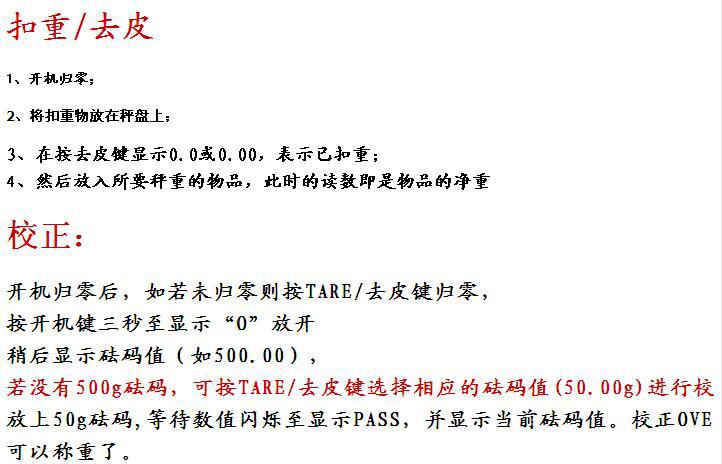 功能:一键清零去皮,低电压/超重提示 多单位转换