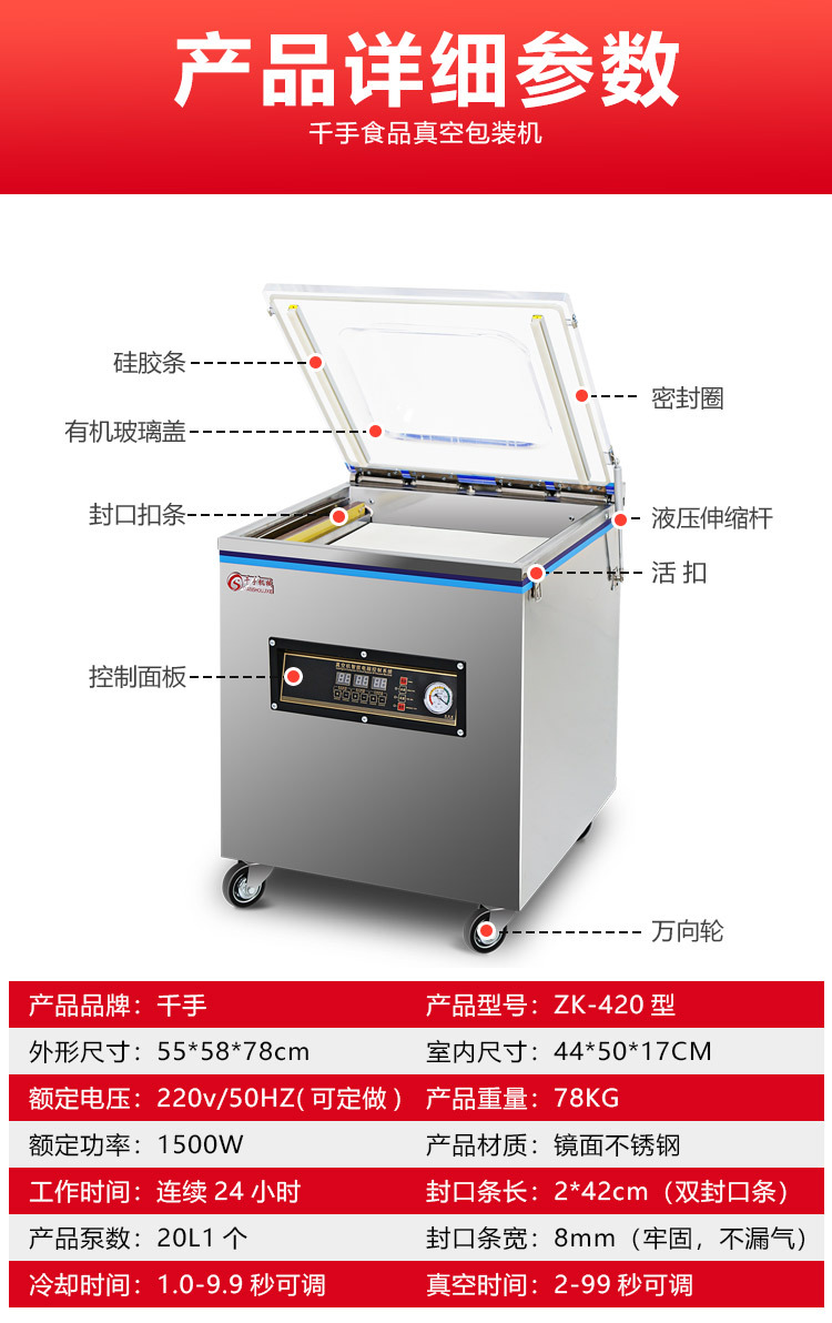 천수 진공 포장기, 가방 선택 불필요, 자동 쌀 블록 상업용 식품 보존 포장 성형 대형 진공기스토어 가기